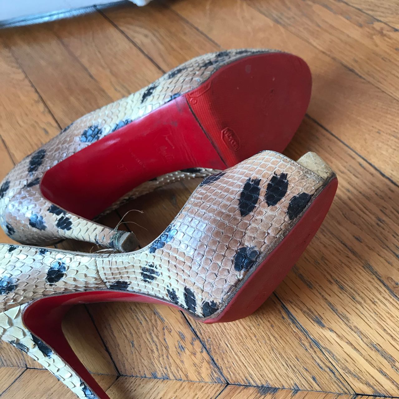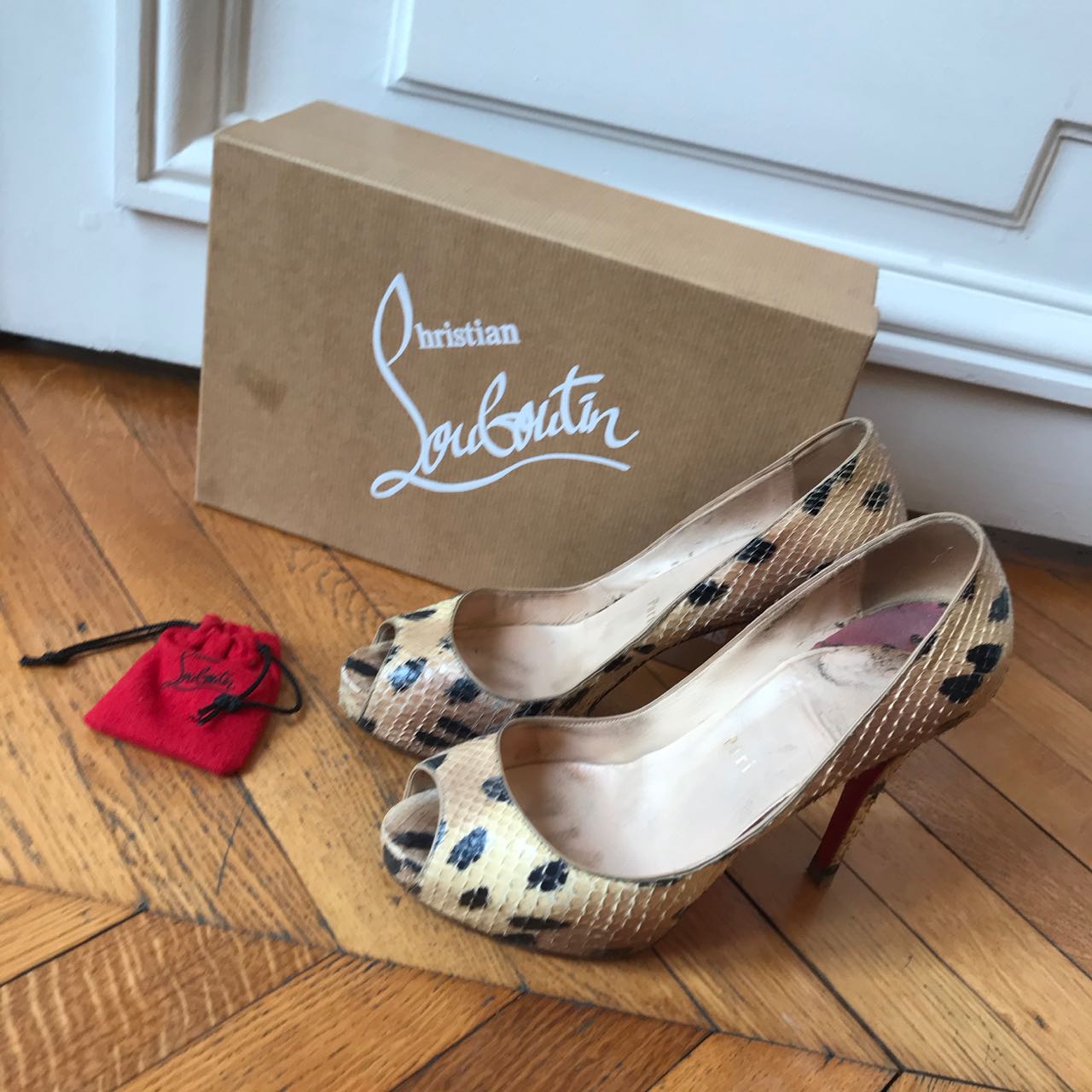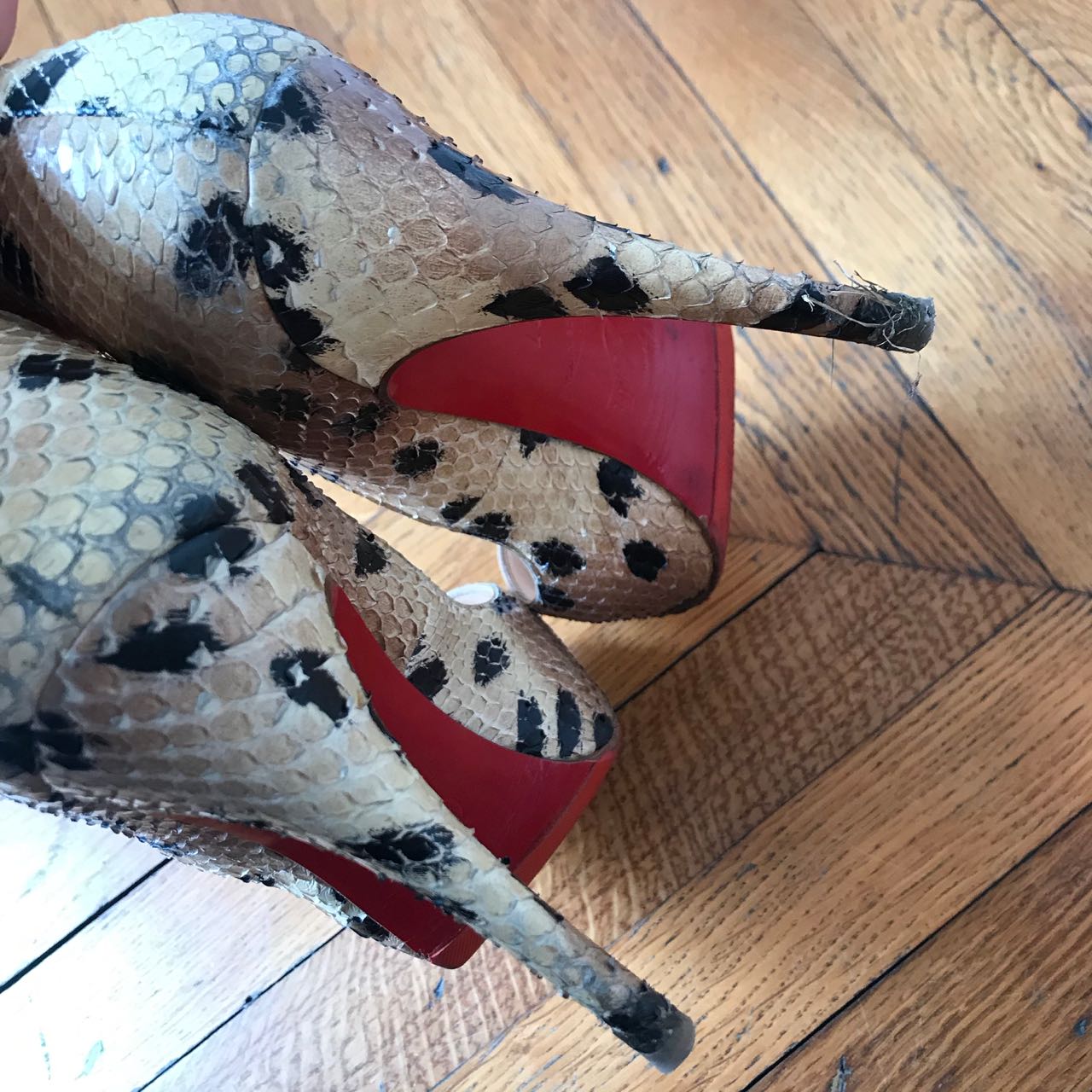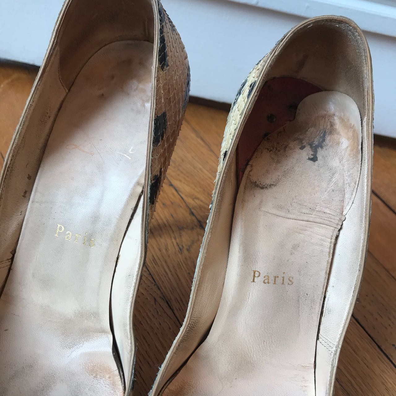 Etat : semelle intérieure décalée et talons frottés (voir photo).