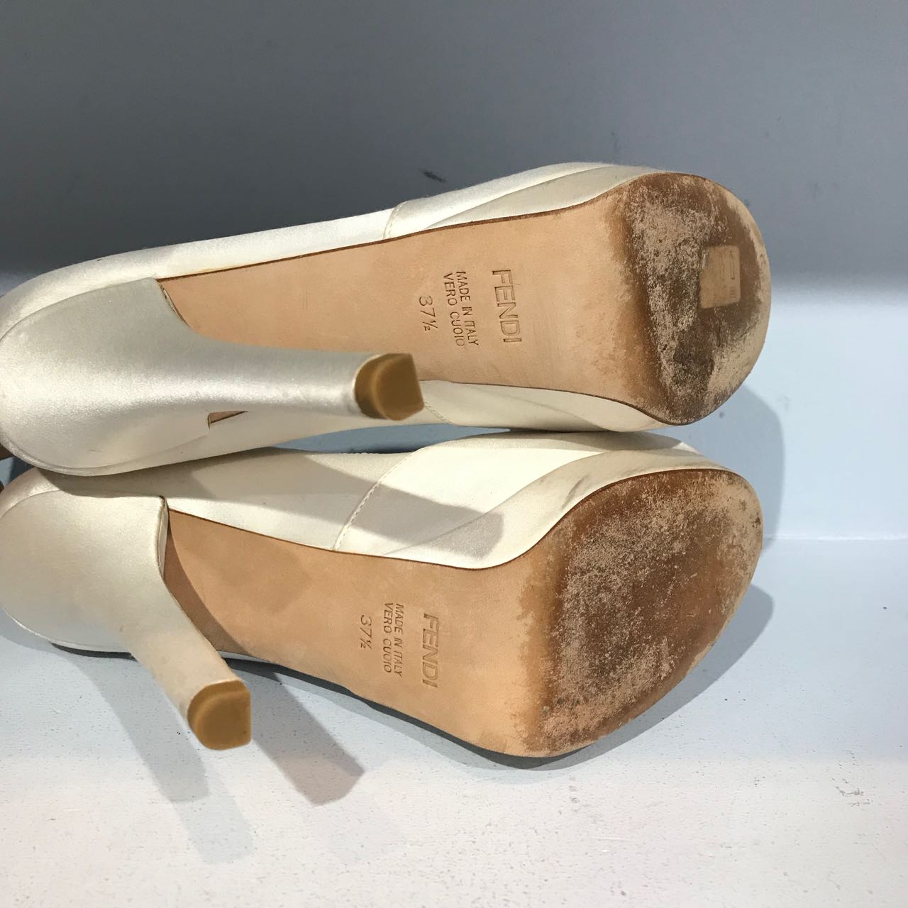 Hauteur des talons 13,5 cm dont plateaux 1,5 cm.