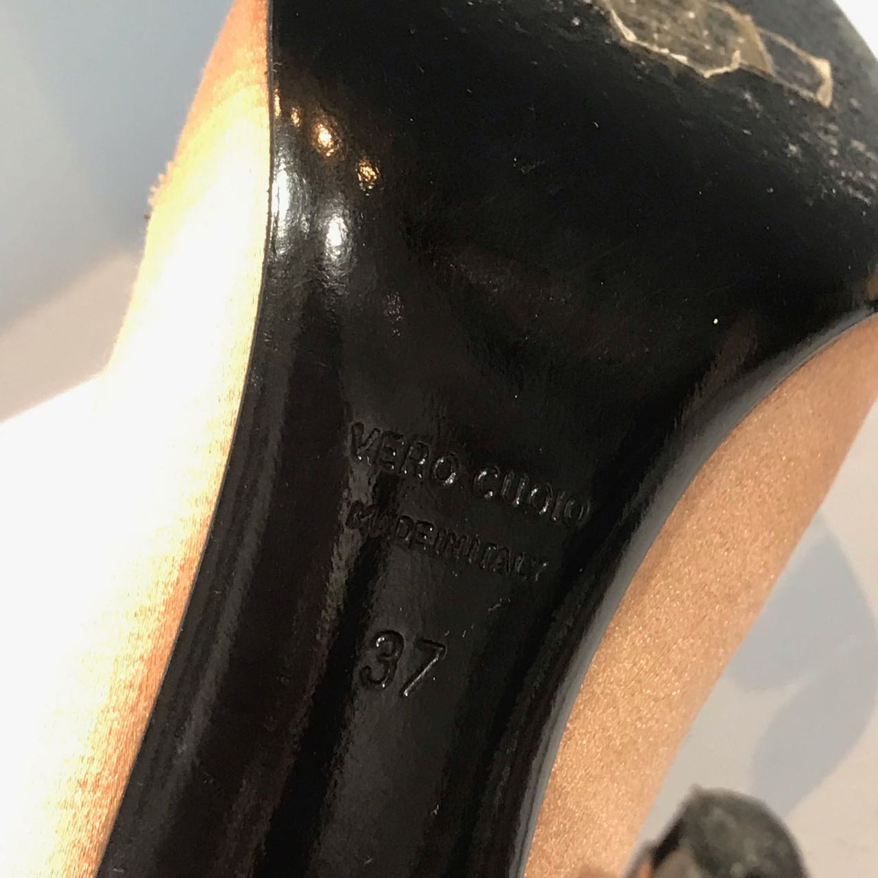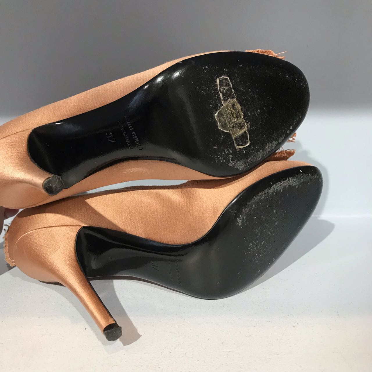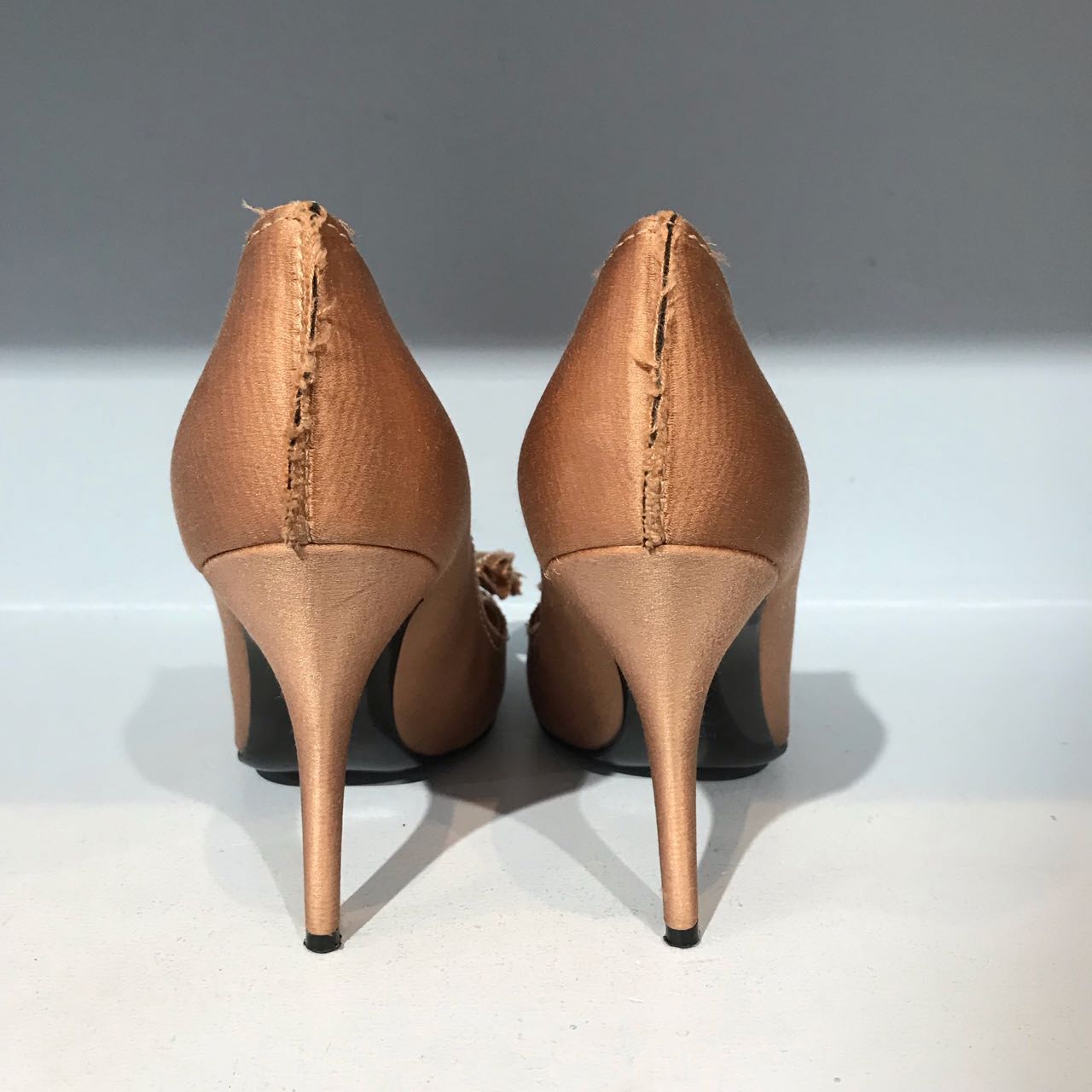 Escarpins en cuir satin beige avec noeud sur les bouts.