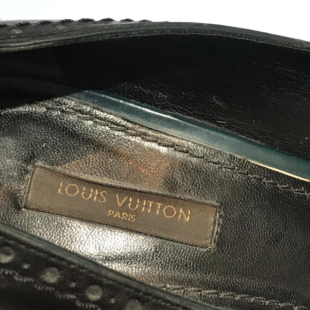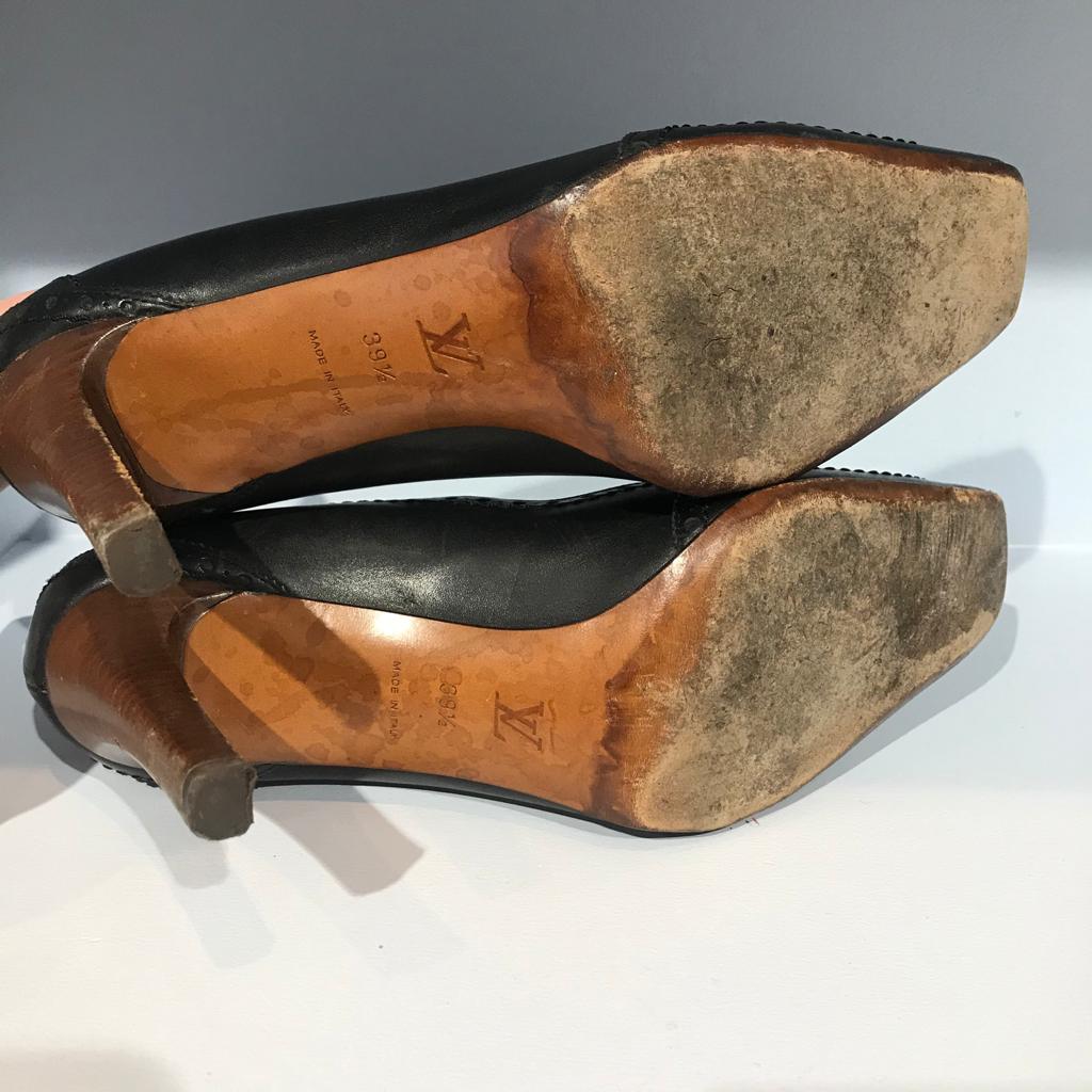 Escarpins en cuir ajouré noir, à bouts carrés.