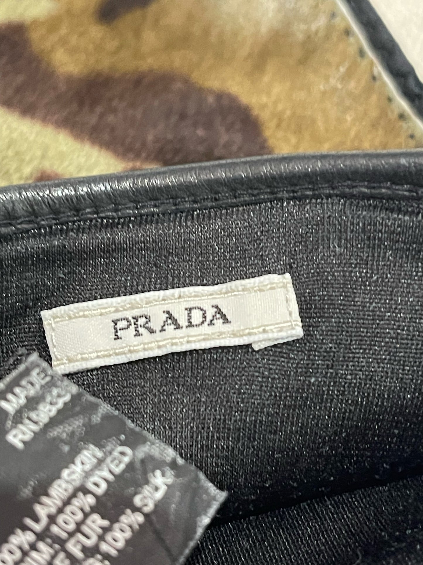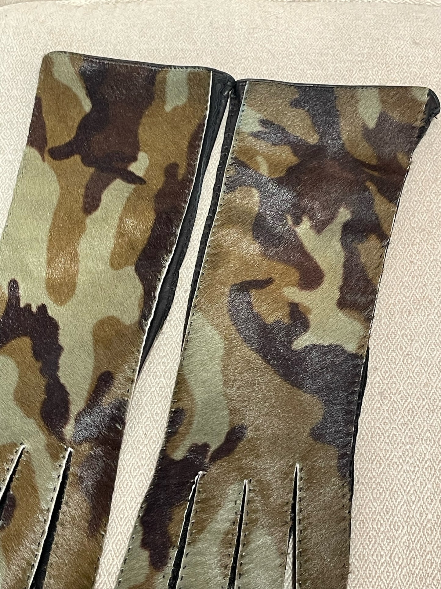 Gants en cuir noir et poulain à motif camouflage kaki.