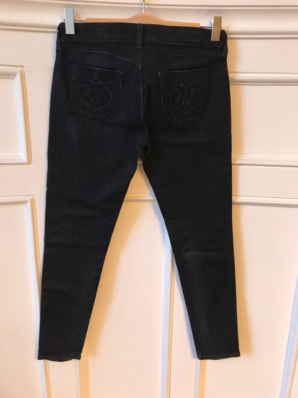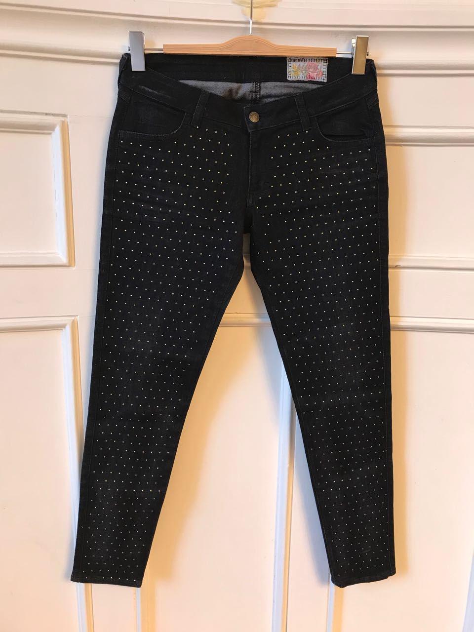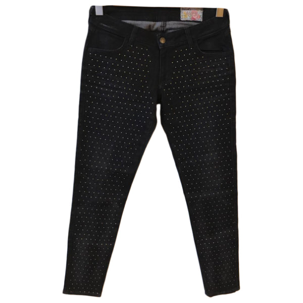 Jeans en coton et elasthane en denim brut et petits clous argents. Coupe slim.