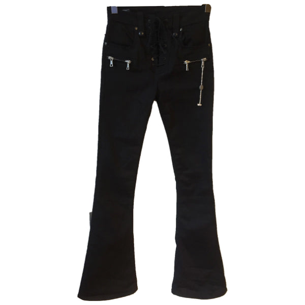 Jeans en coton noir coupe évasée sur le bas. avec zips argents.