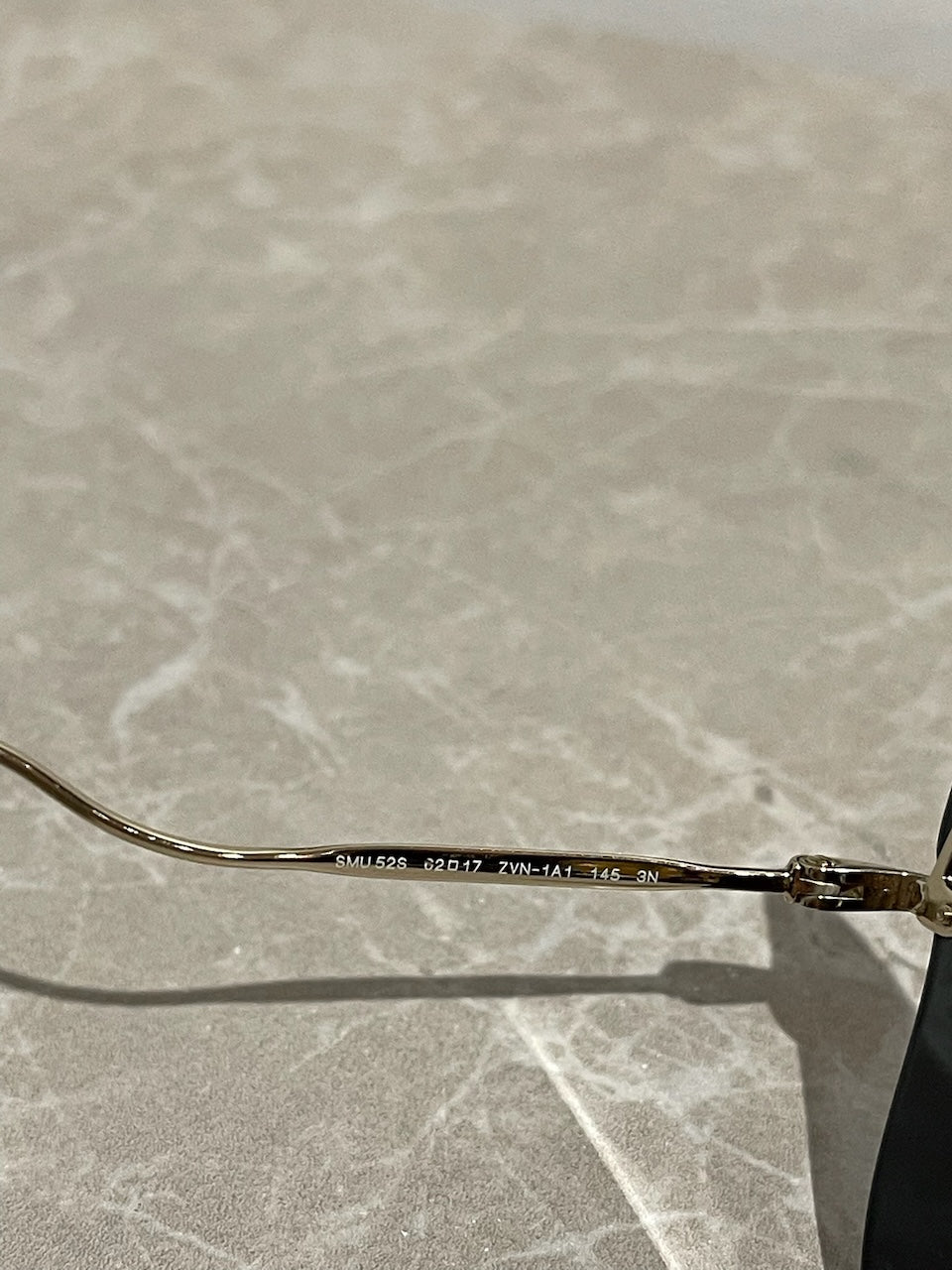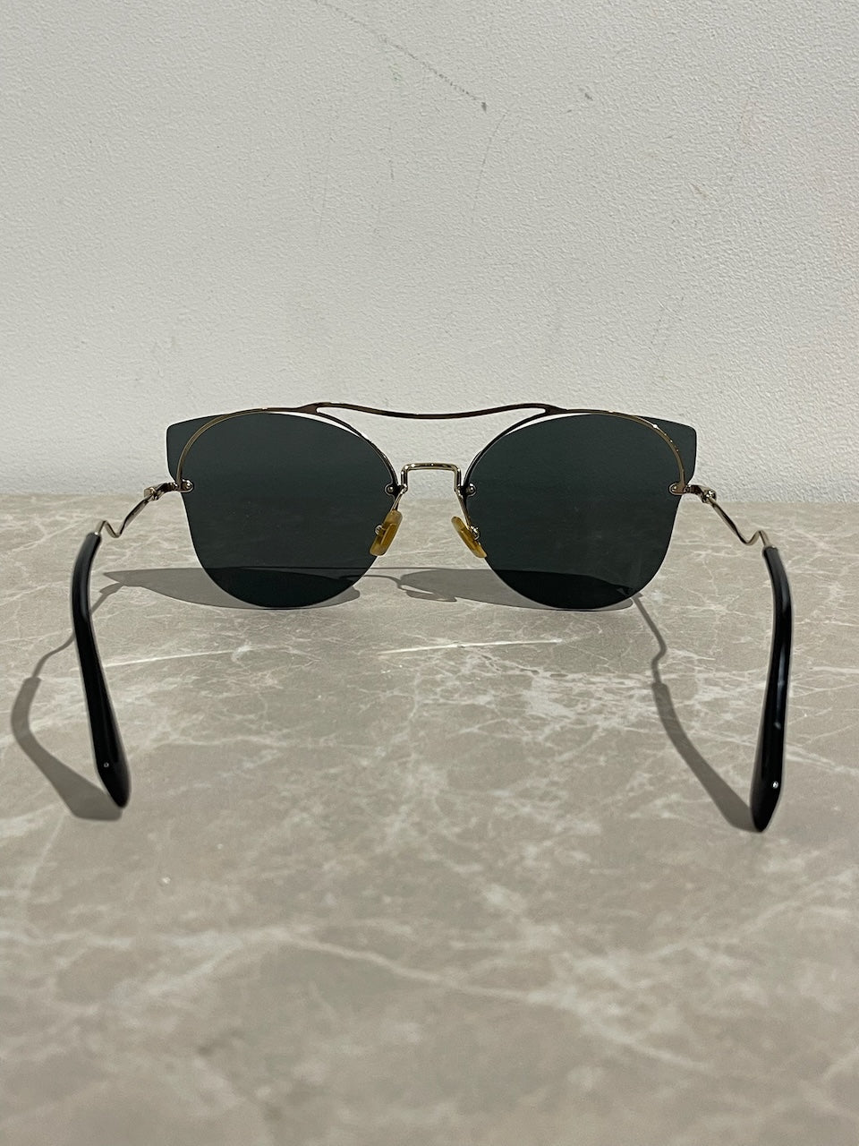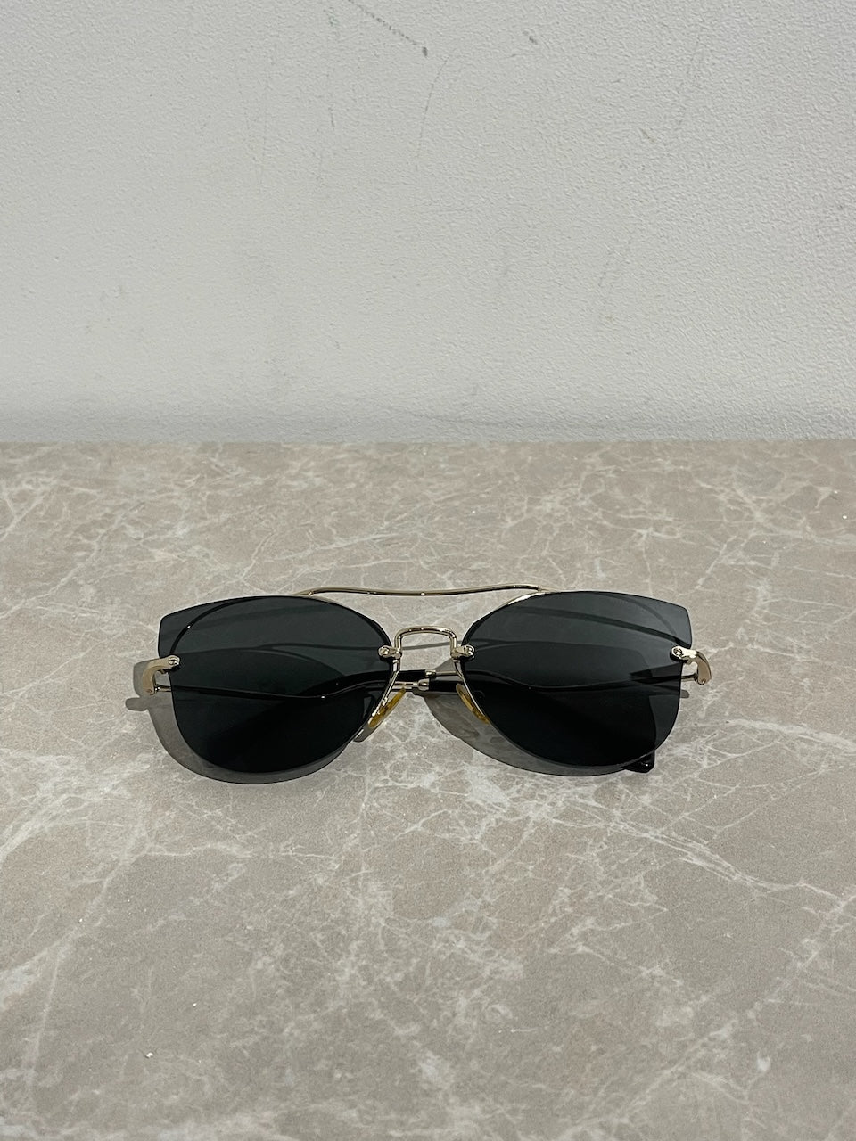 Lunettes en métal dorée, monture fines, verres teintées et branches signées Miu Miu.