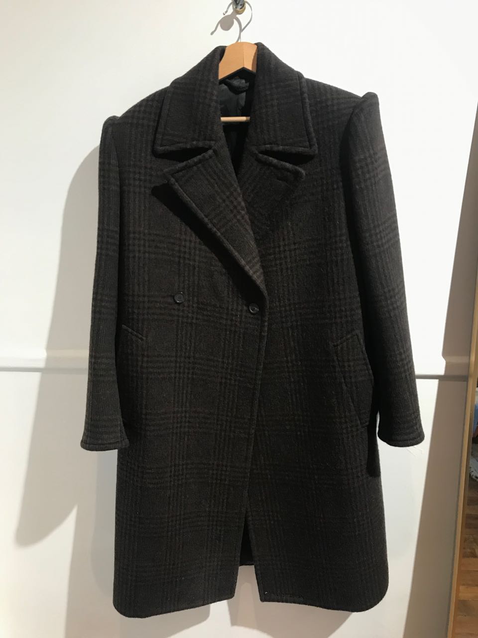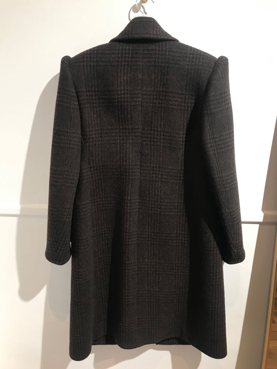 Manteau "Padded shoulder" en laine à carreaux marron avec épaulettes, coupe très oversize.