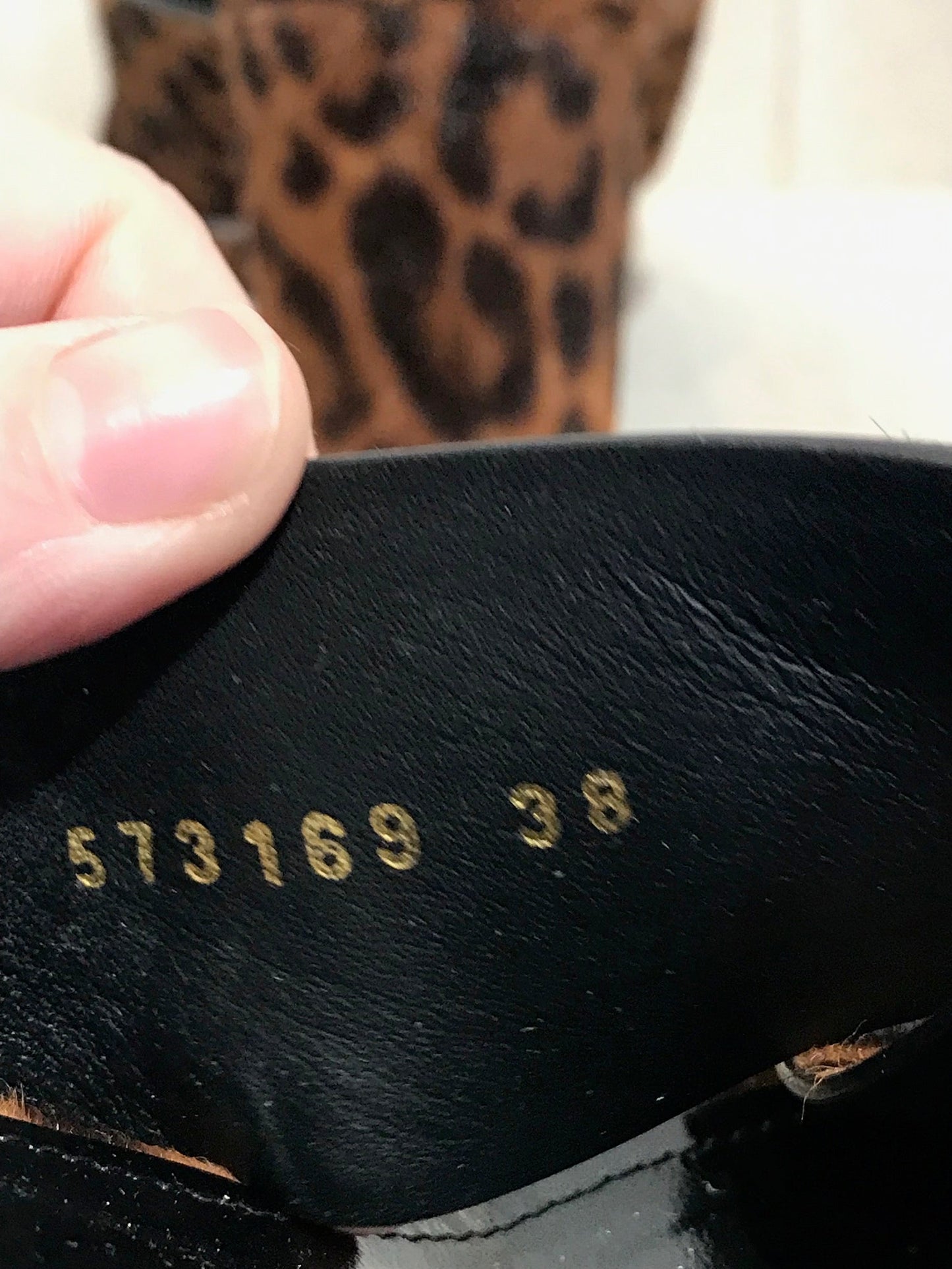 Sandales à talons en poulain à motif léopard. Brides croisées.