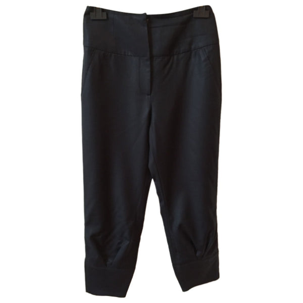 Pantalon bleu marine en laine et mohair, coupe carotte