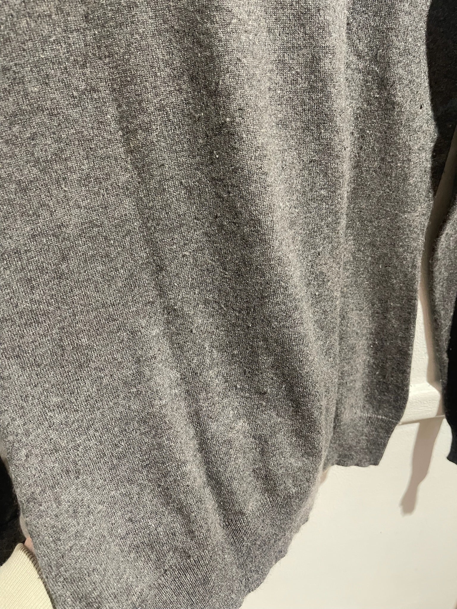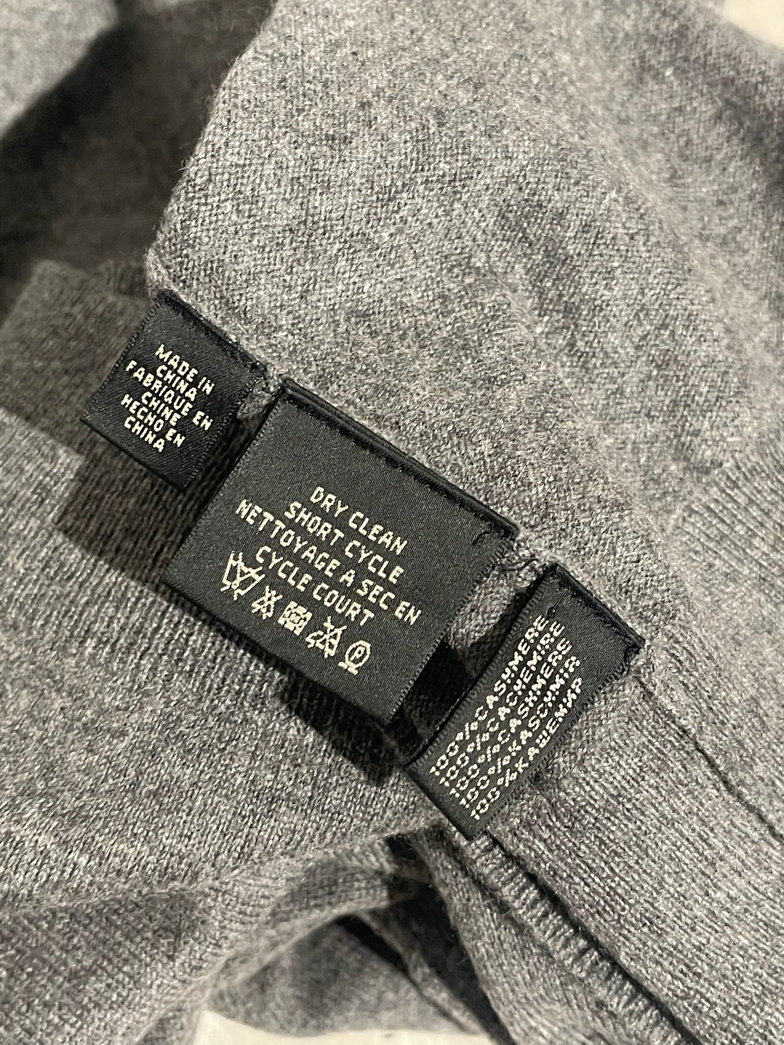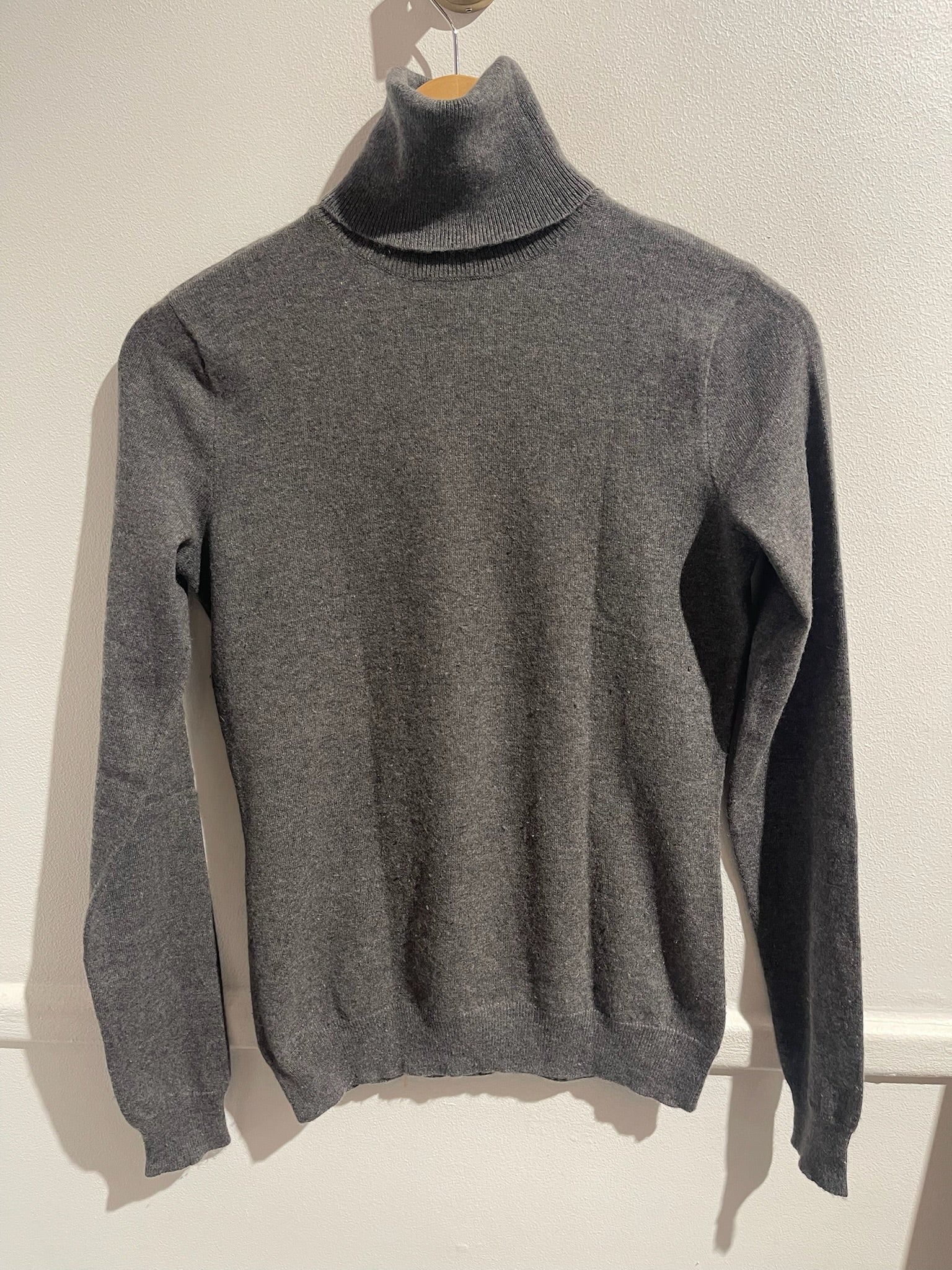 Col roulé en cachemire gris et manches longues. Modèle unisexe. Coupe droite.
