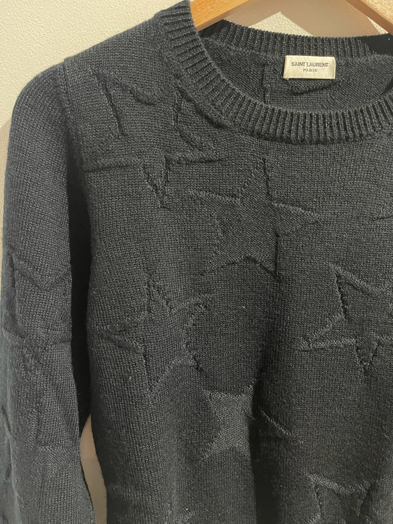 Pull 100% laine bleu marine avec col rond et manches longues . Motif étoile fondu à l'avant et à l'arrière du pull.