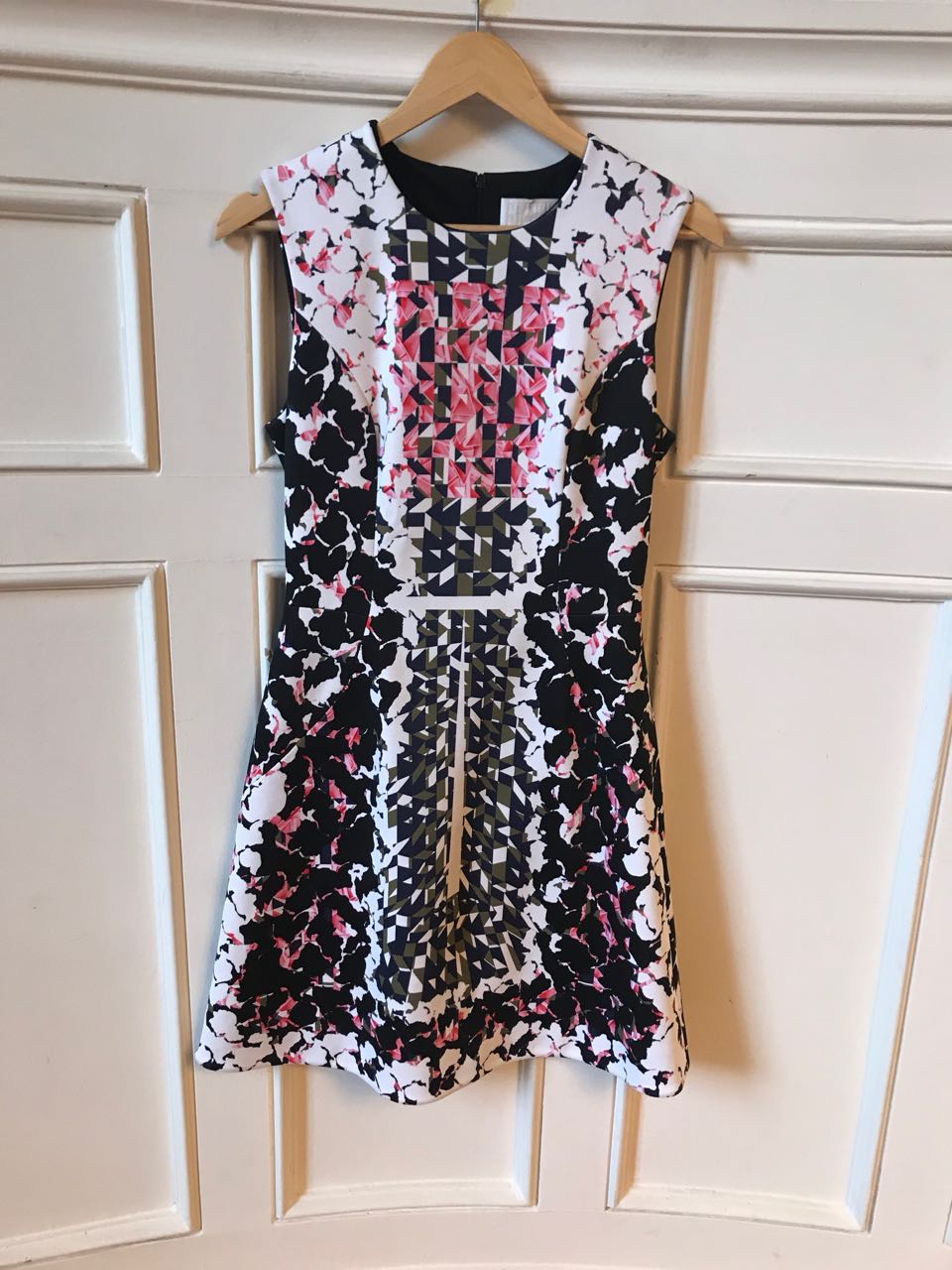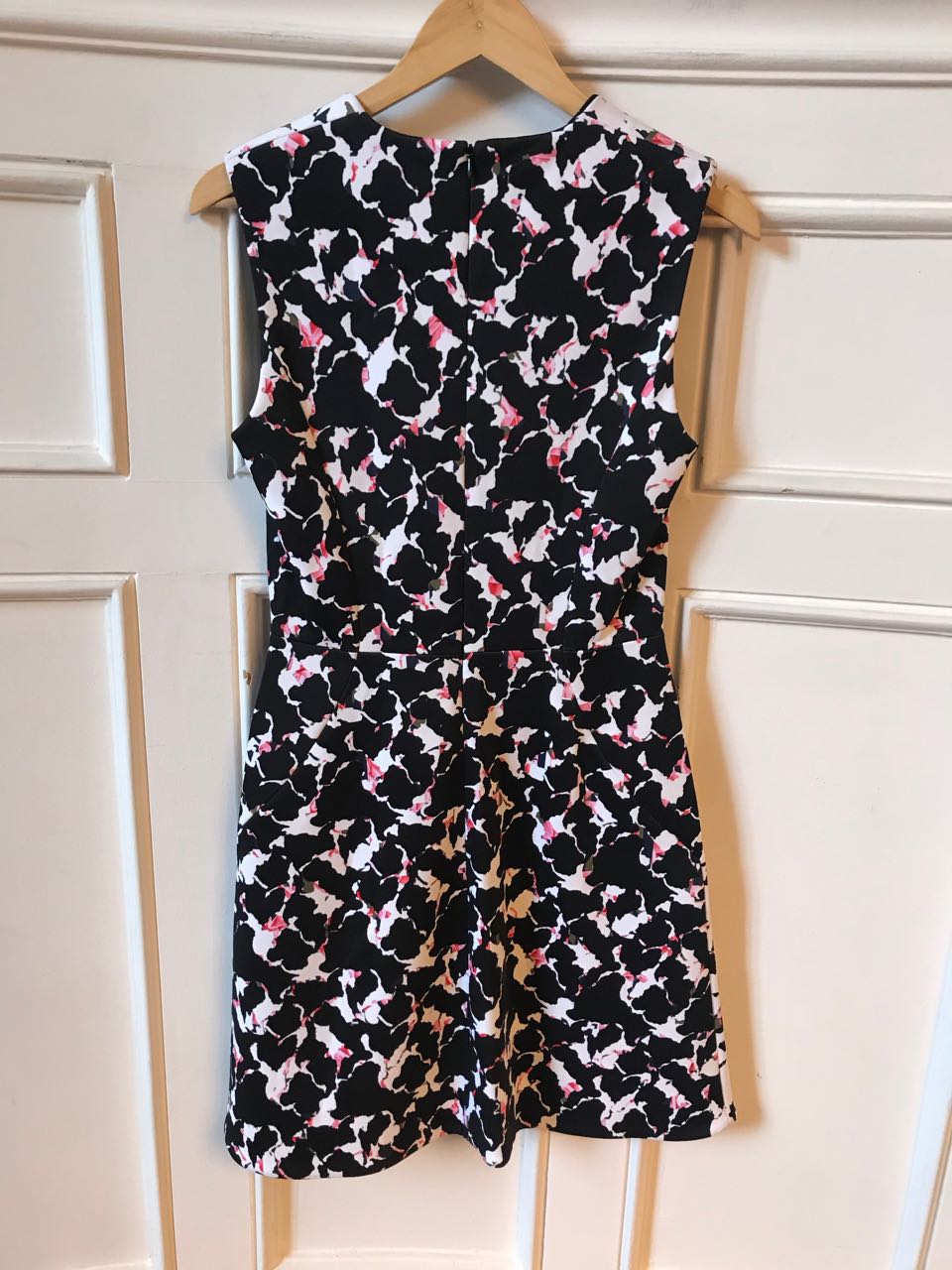 Robe courte imprimé dans les coloris noir-blanc-rose-kaki.