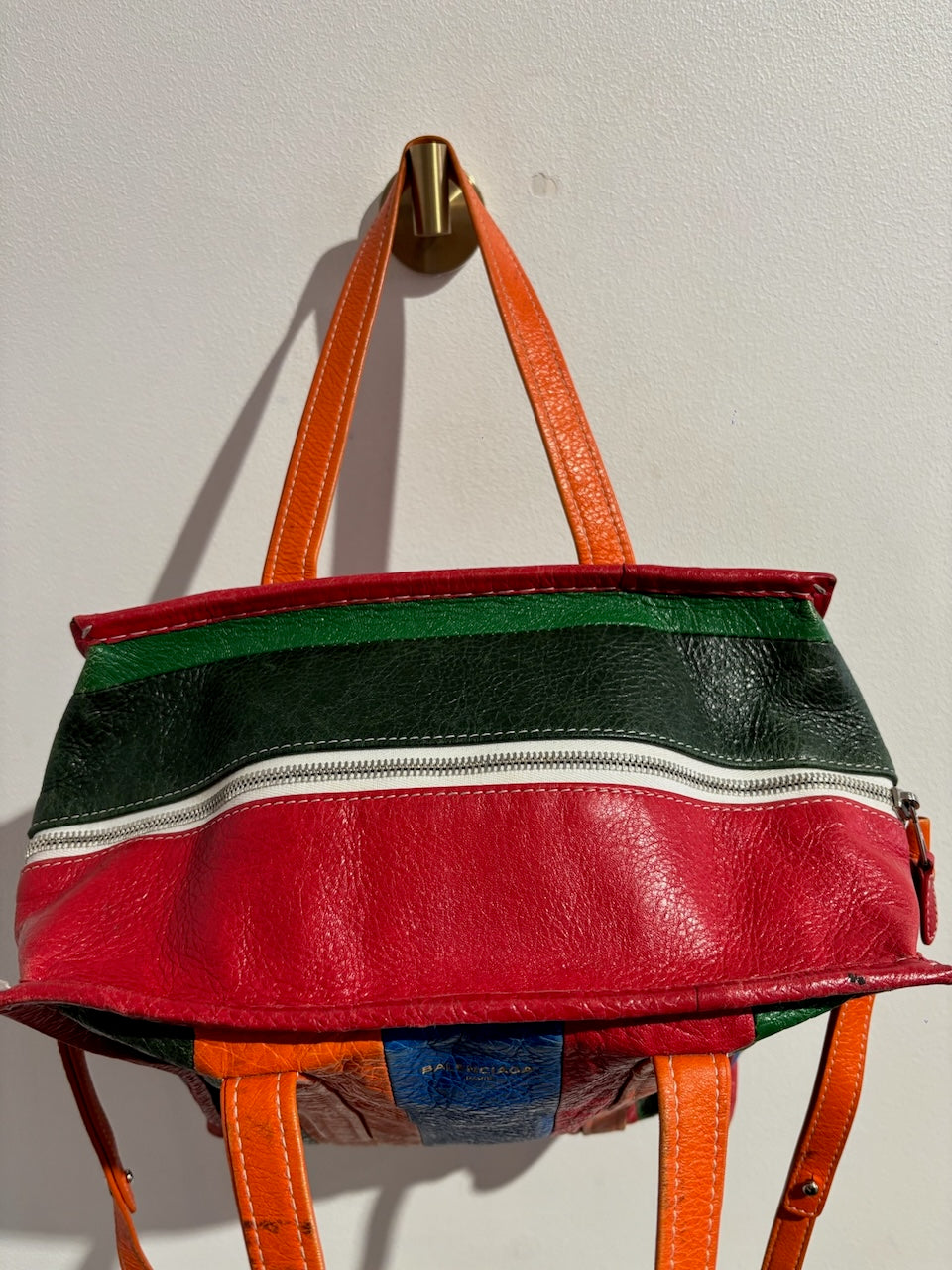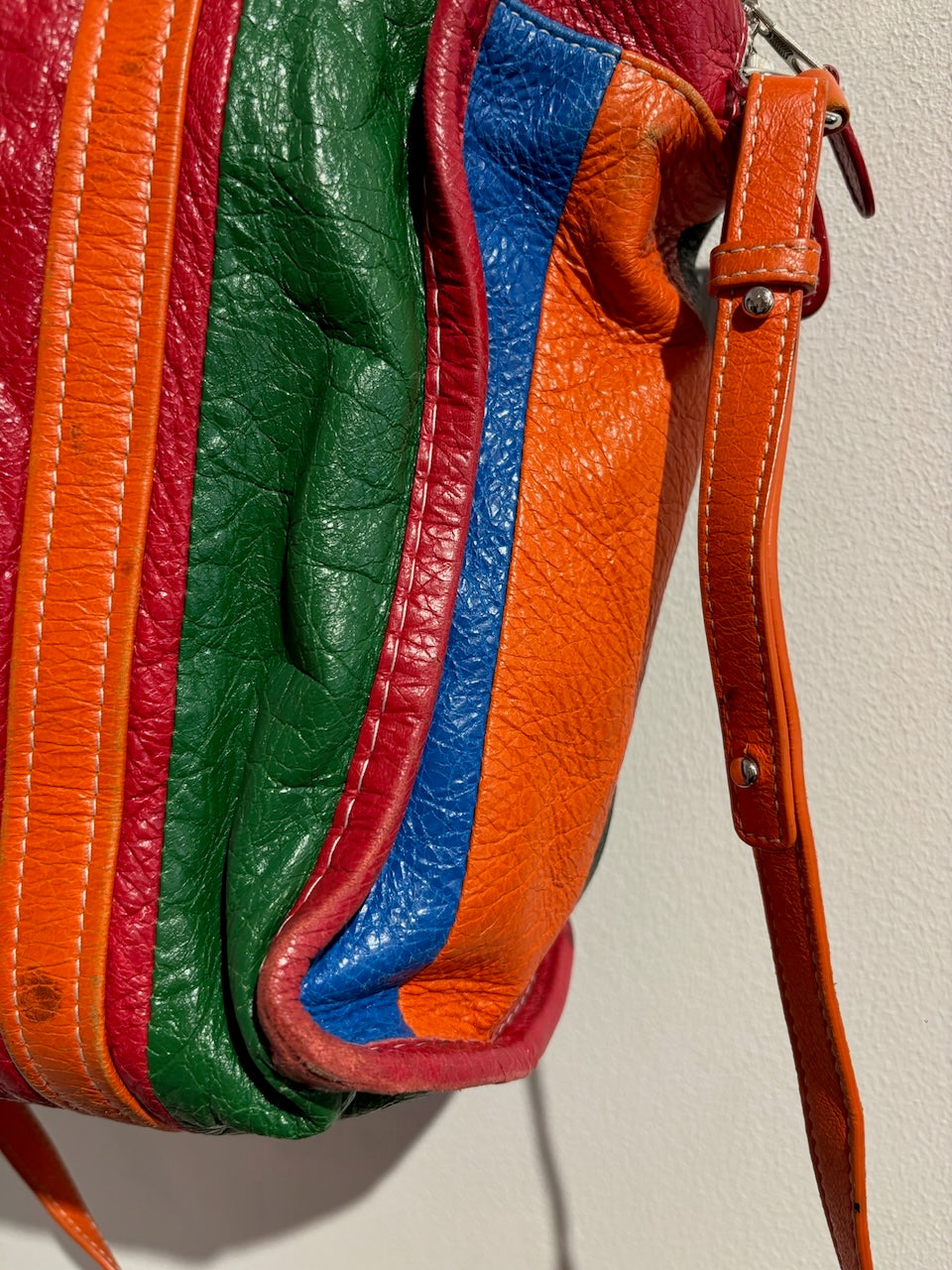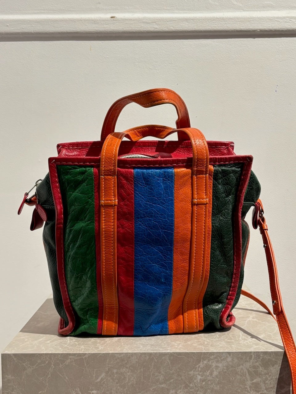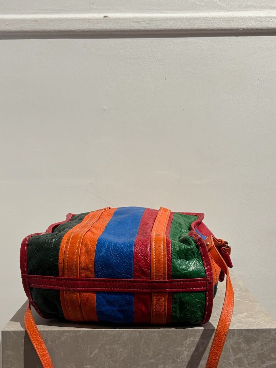Sac à main en cuir effet vieilli rayé multicolore avec anse sur le dessus pour un porté main et bandoulière ajustable et amovible pour un porté crossbody. Fermeture zippée. Poche intérieure zippée et poche plate. Bijouterie argent.