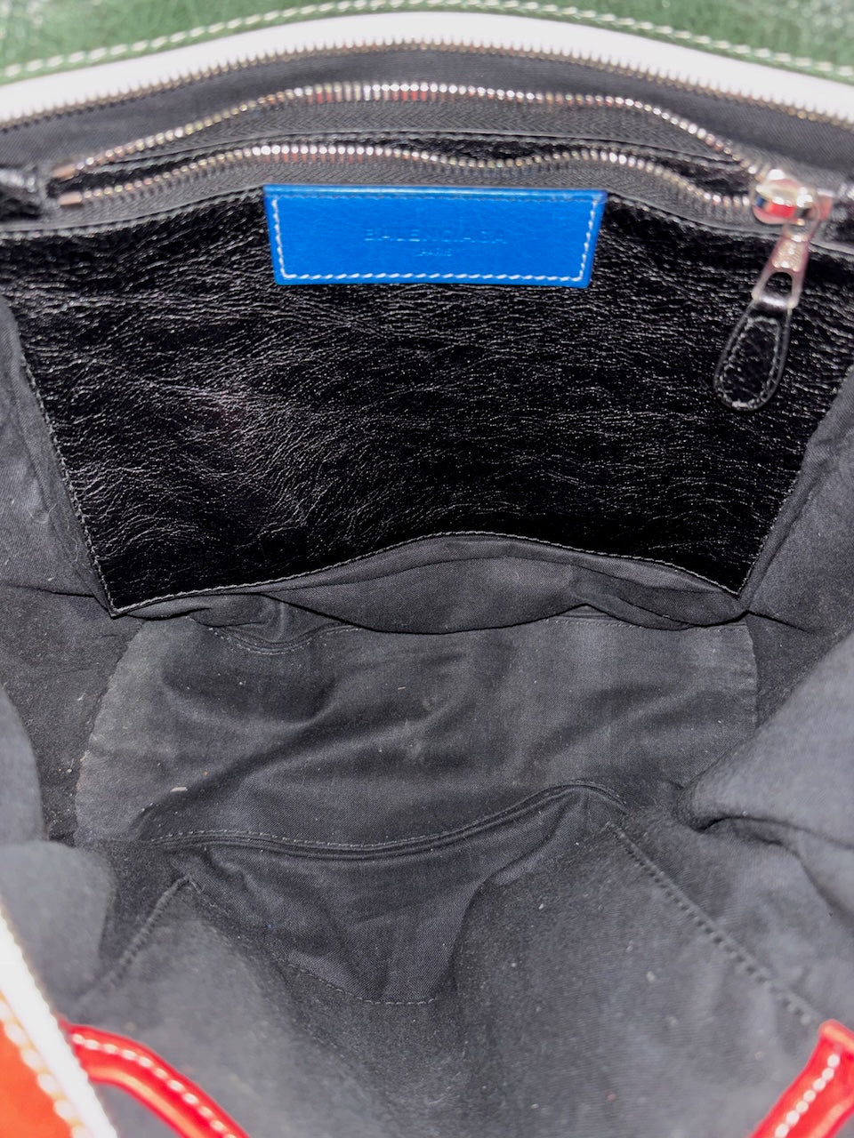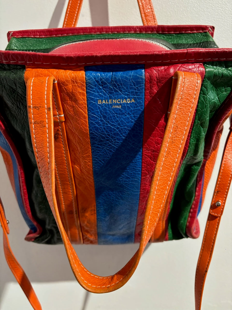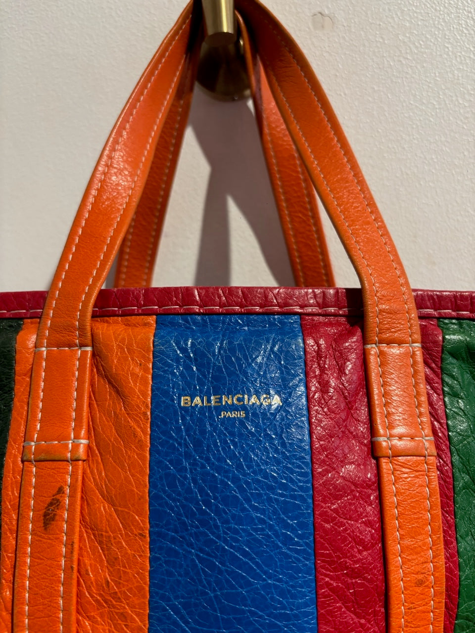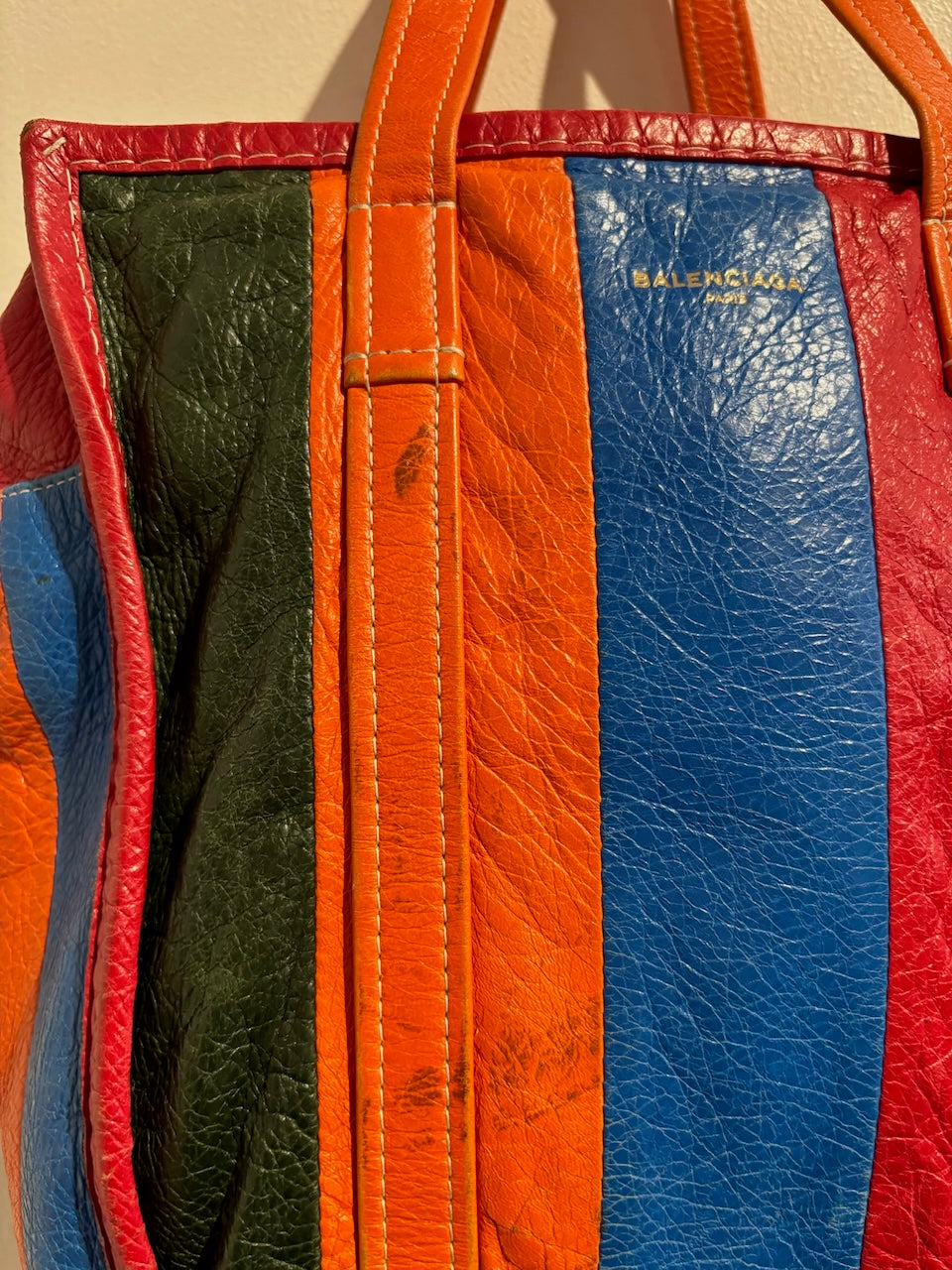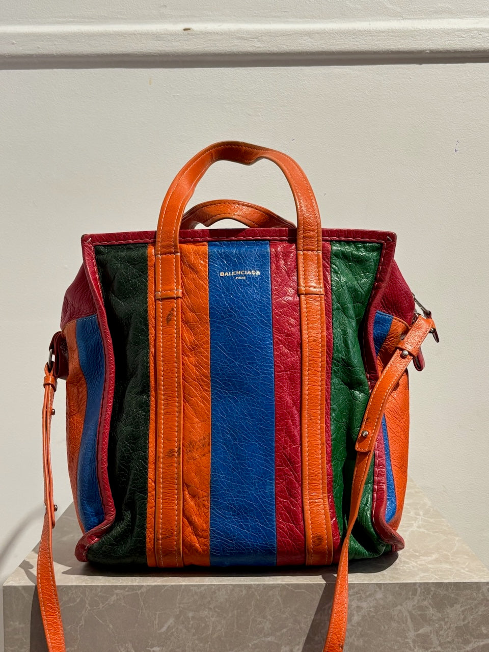 Sac à main en cuir effet vieilli rayé multicolore avec anse sur le dessus pour un porté main et bandoulière ajustable et amovible pour un porté crossbody. Fermeture zippée. Poche intérieure zippée et poche plate. Bijouterie argent.