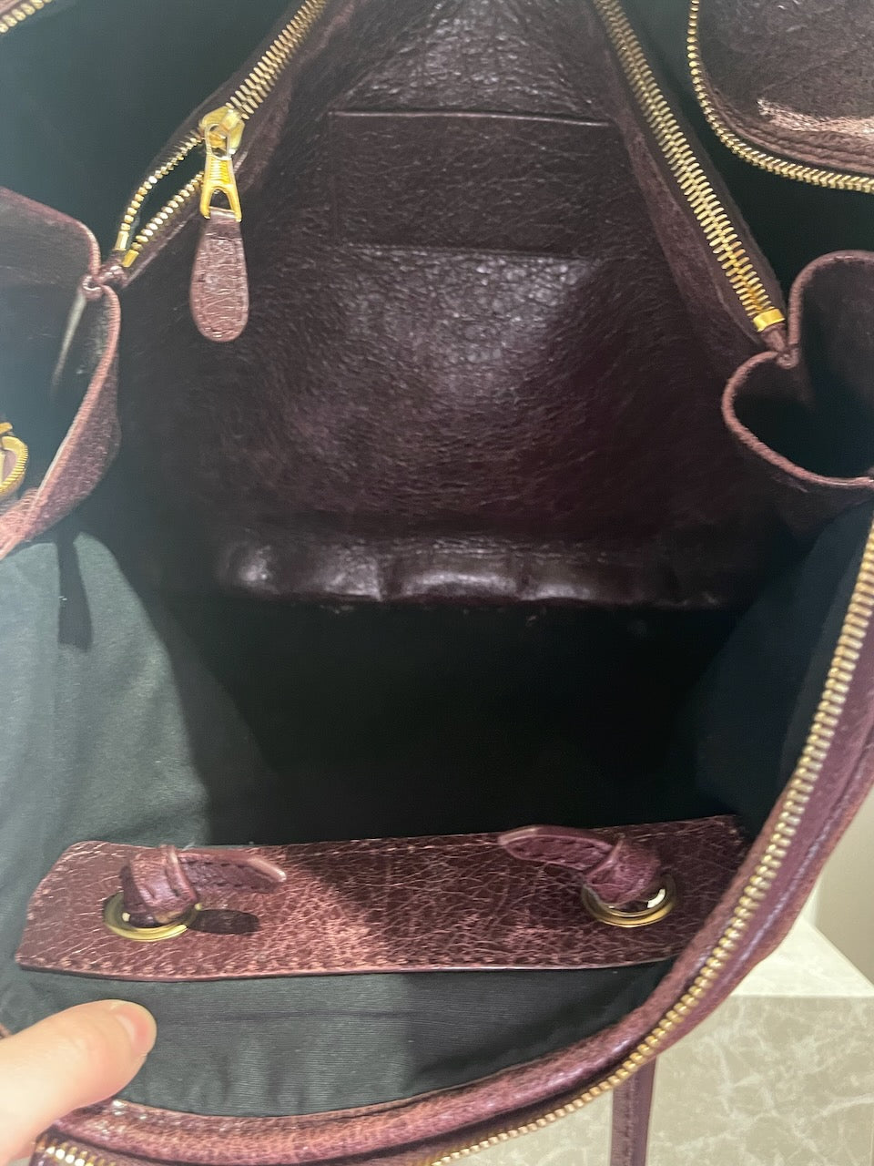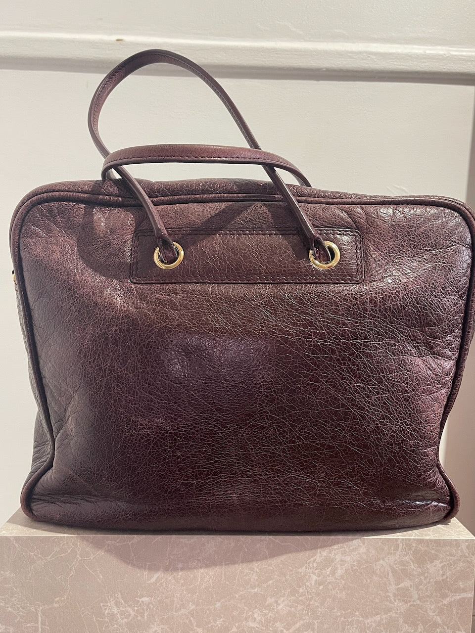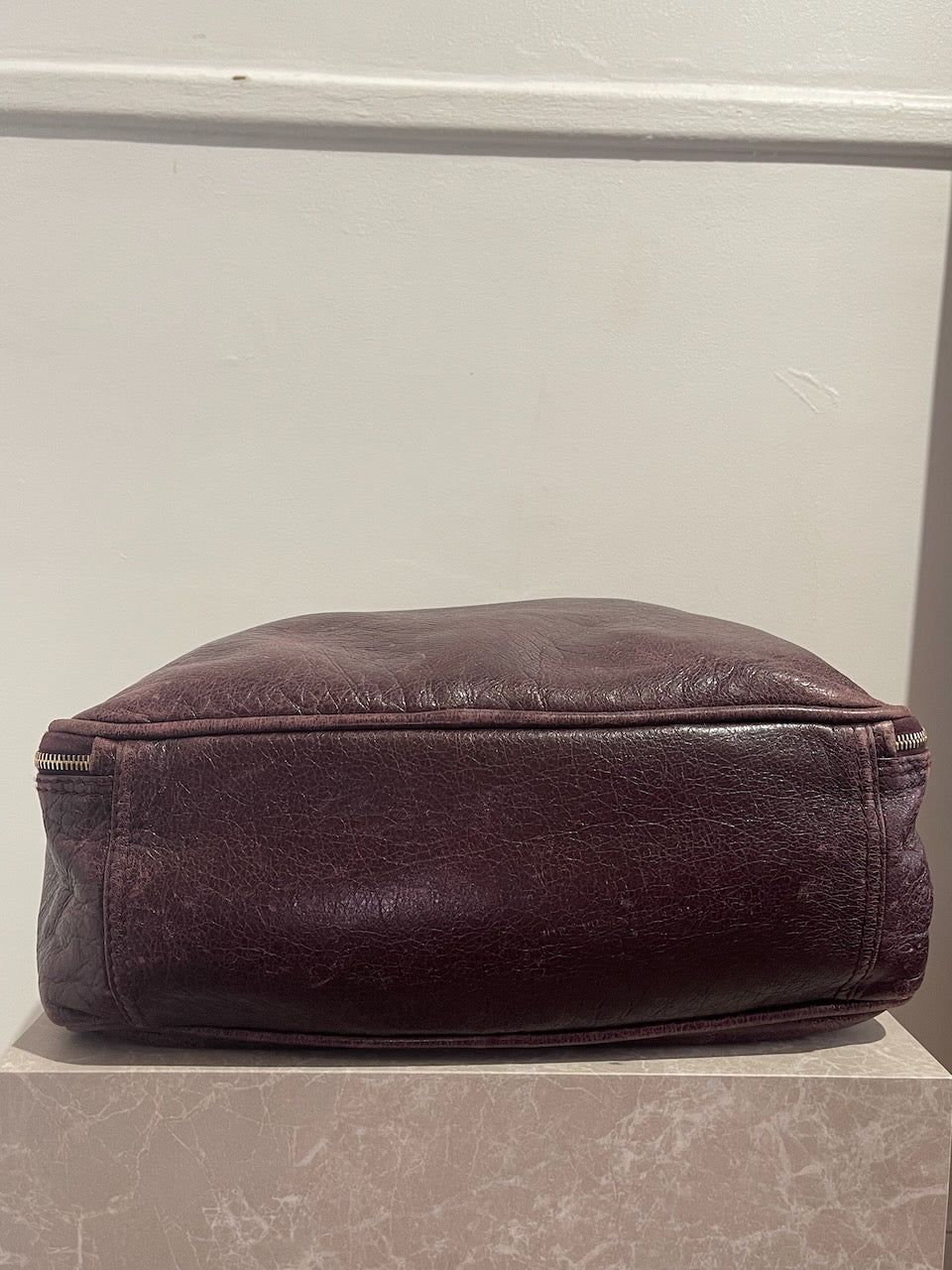 Original sac à main Balenciaga Blanket Square moyen modèle en cuir couleur violet foncé. Garniture en métal doré, double poignée pour un porté épaule ou main. Fermeture zippée. Possibilité de rajouter une anse bandoulière.