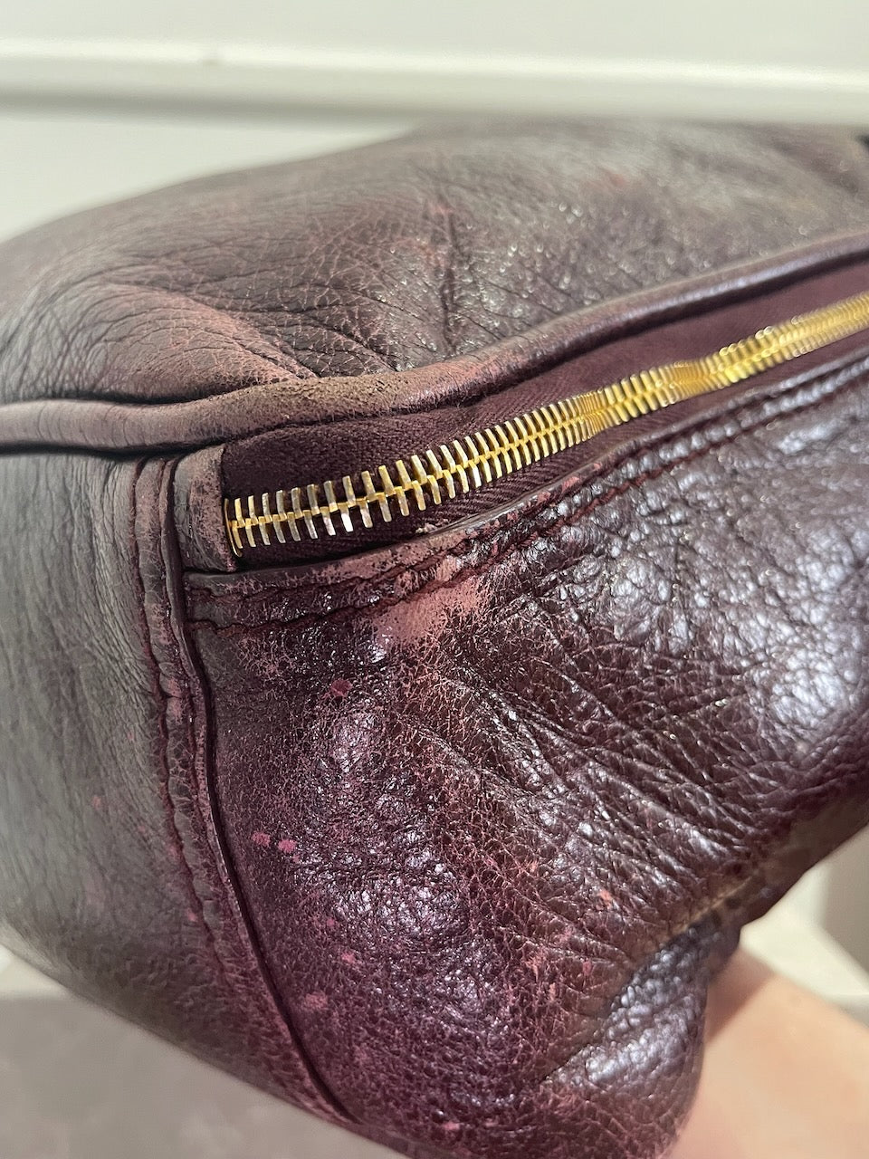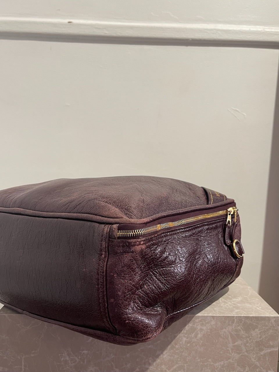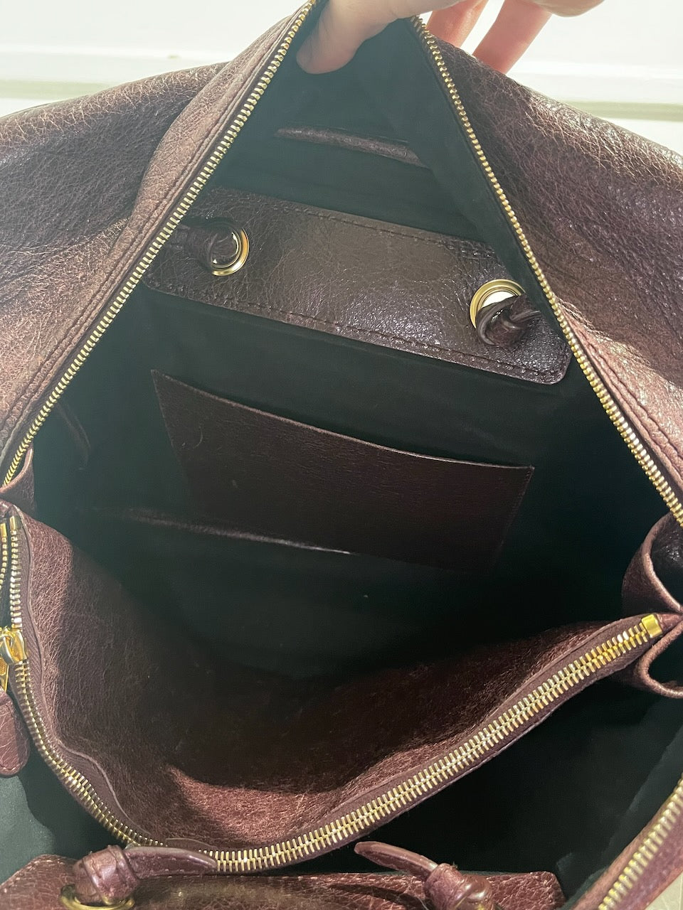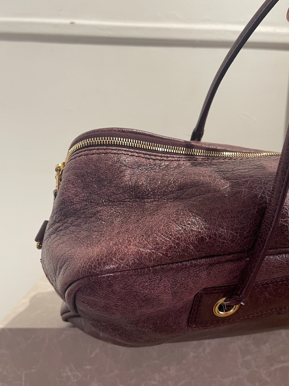 Original sac à main Balenciaga Blanket Square moyen modèle en cuir couleur violet foncé. Garniture en métal doré, double poignée pour un porté épaule ou main. Fermeture zippée. Possibilité de rajouter une anse bandoulière.