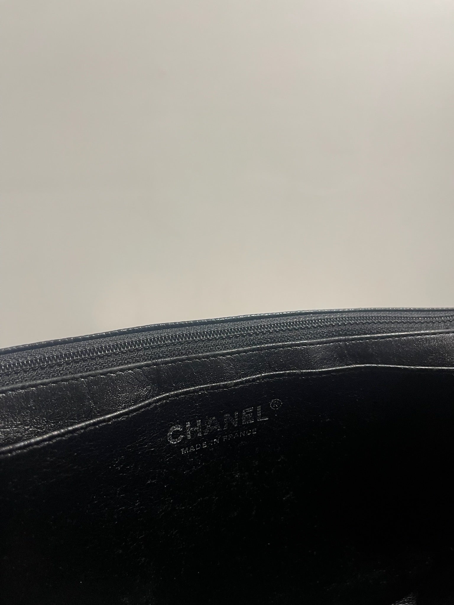 Sac en cuir caviar noir matelassé, avec fermeture à rabat ornée d'un fermoir CC en métal. Bandoulière coulissante en chaine et cuir entrelacé pour un porté à l'épaule ou croisé. Poche intérieure à zip. Poche plaquée au dos du sac. Bijouterie argentée.