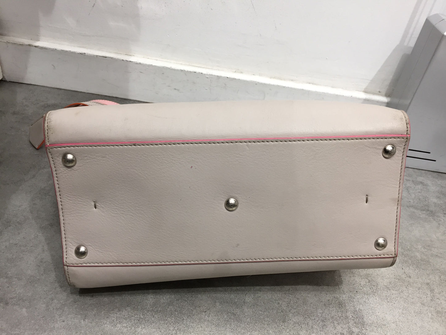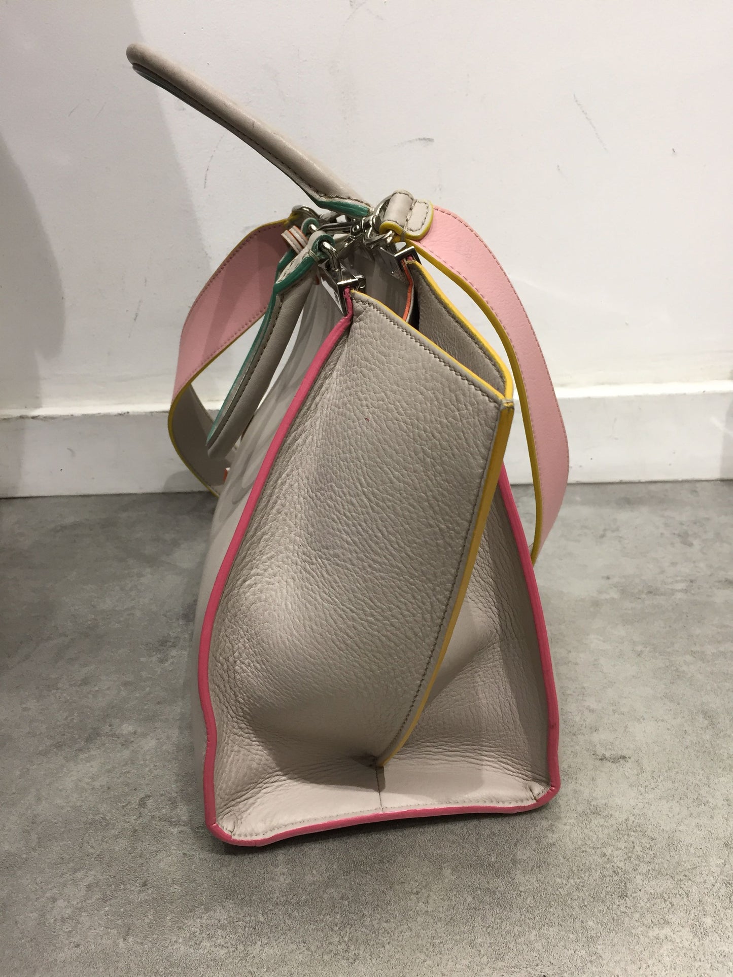 Sac en cuir de veau couleur beige, porté main ou épaule grace a sa bandoulière amovible.