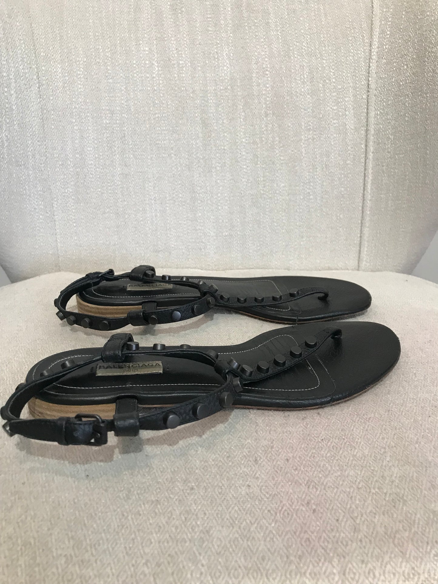 Sandales en en cuir noir avec petits clous en métal noir. Boucle ajustable aux chevilles.