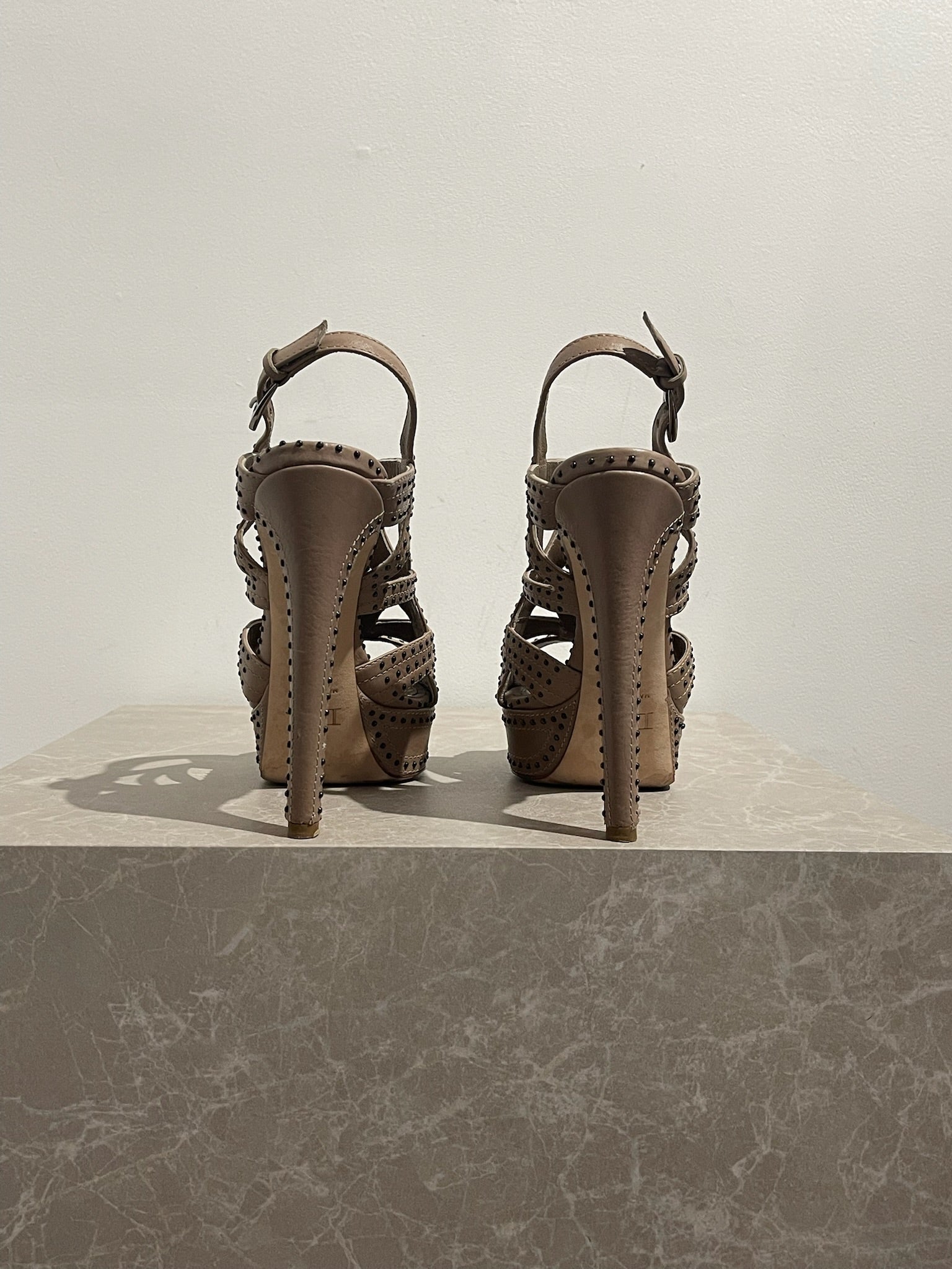 Hauteur des talons 13 cm dont une plateforme de 3 cm.
