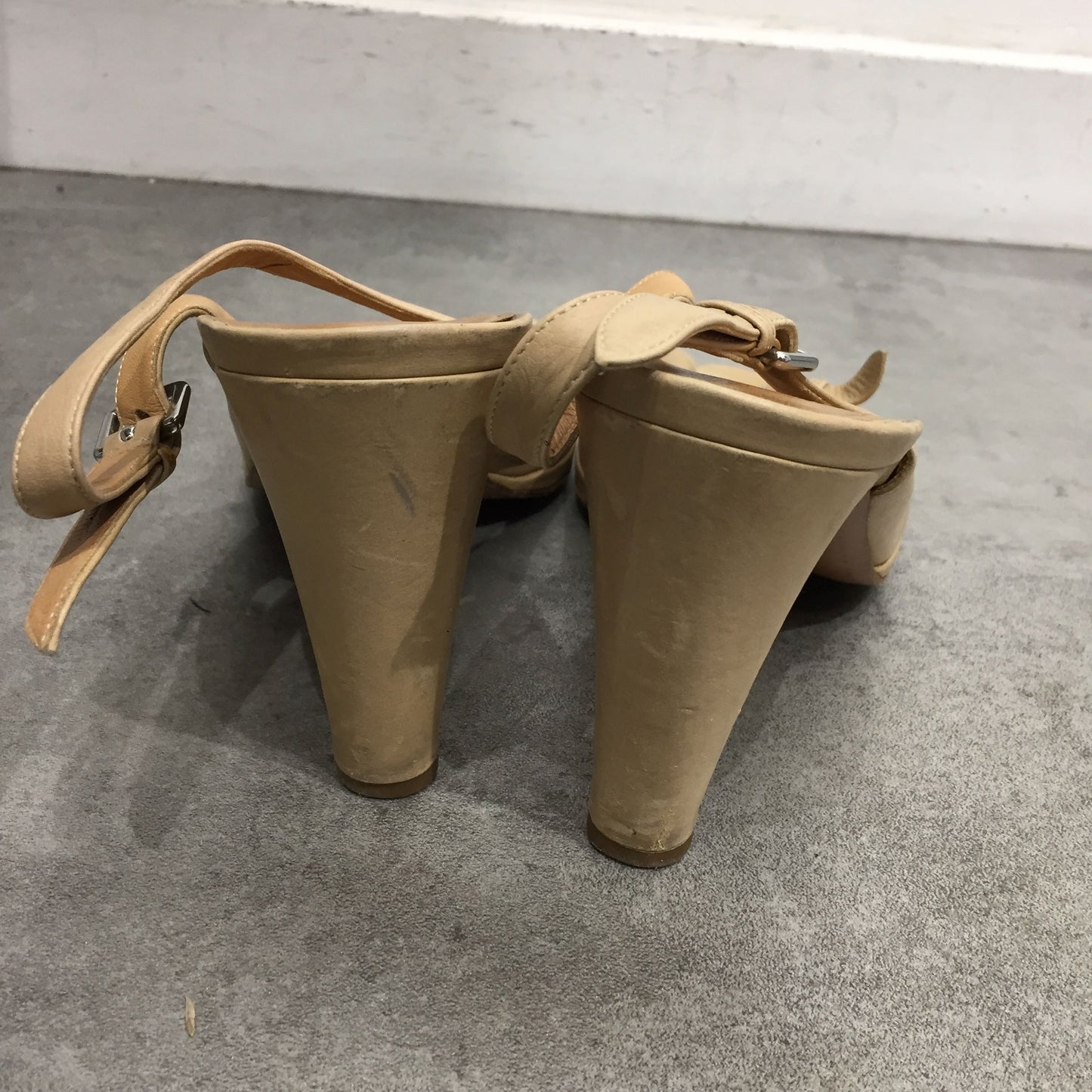 Sandales en cuir beige.