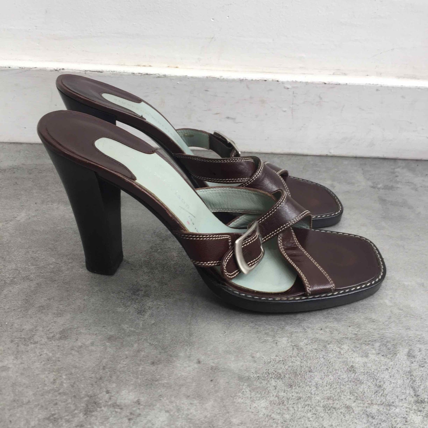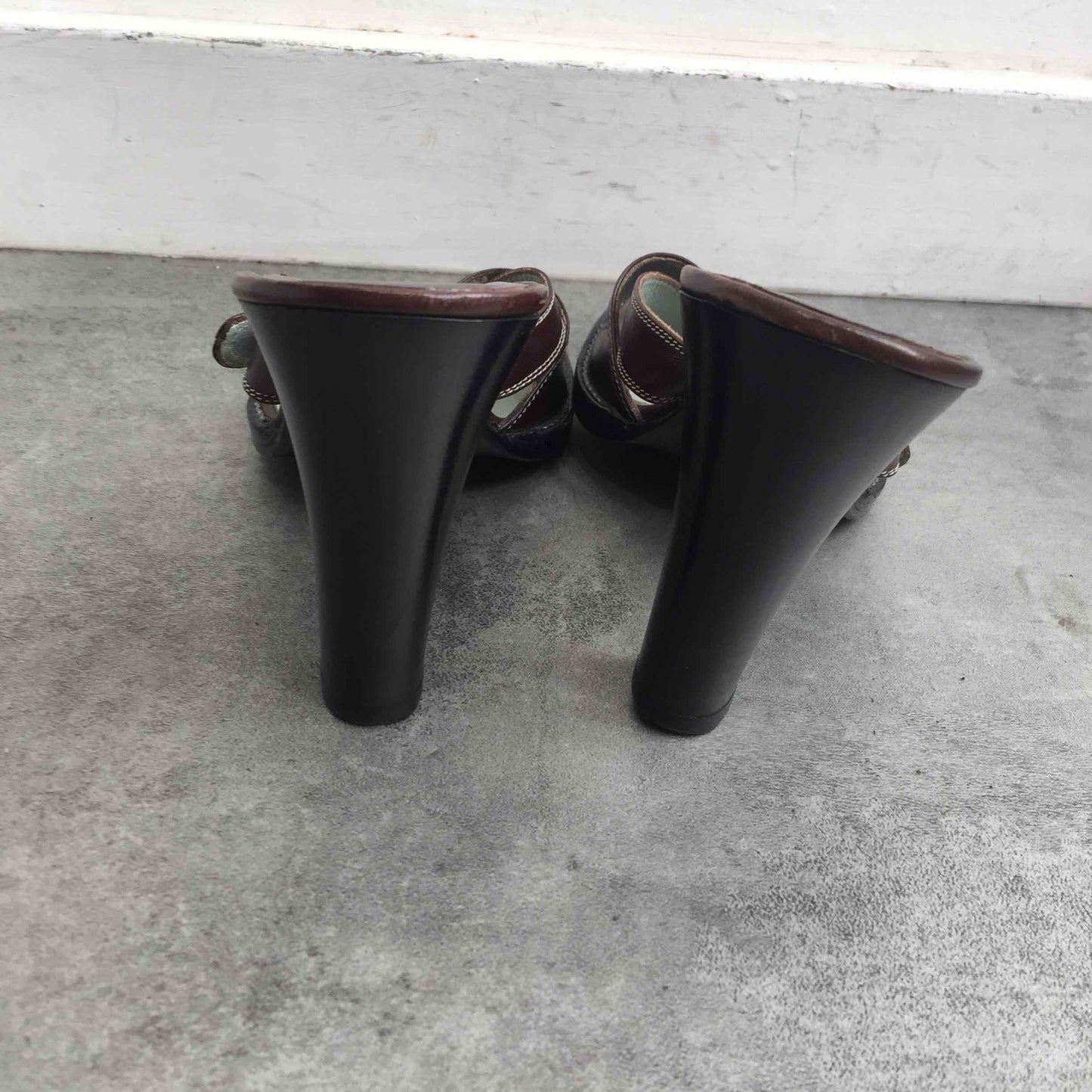 Sandales en cuir marron a brides croisées.