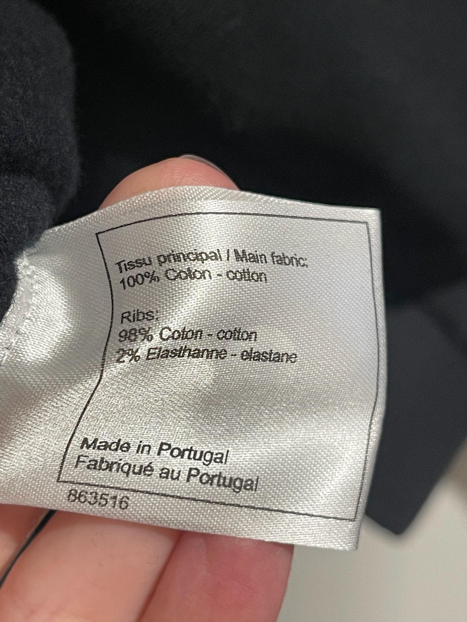 Sweatshirt en 100% coton noir avec logo Chanel en velours. Col rond et manches longues. Coton épais molletonné. Modèle unisexe.