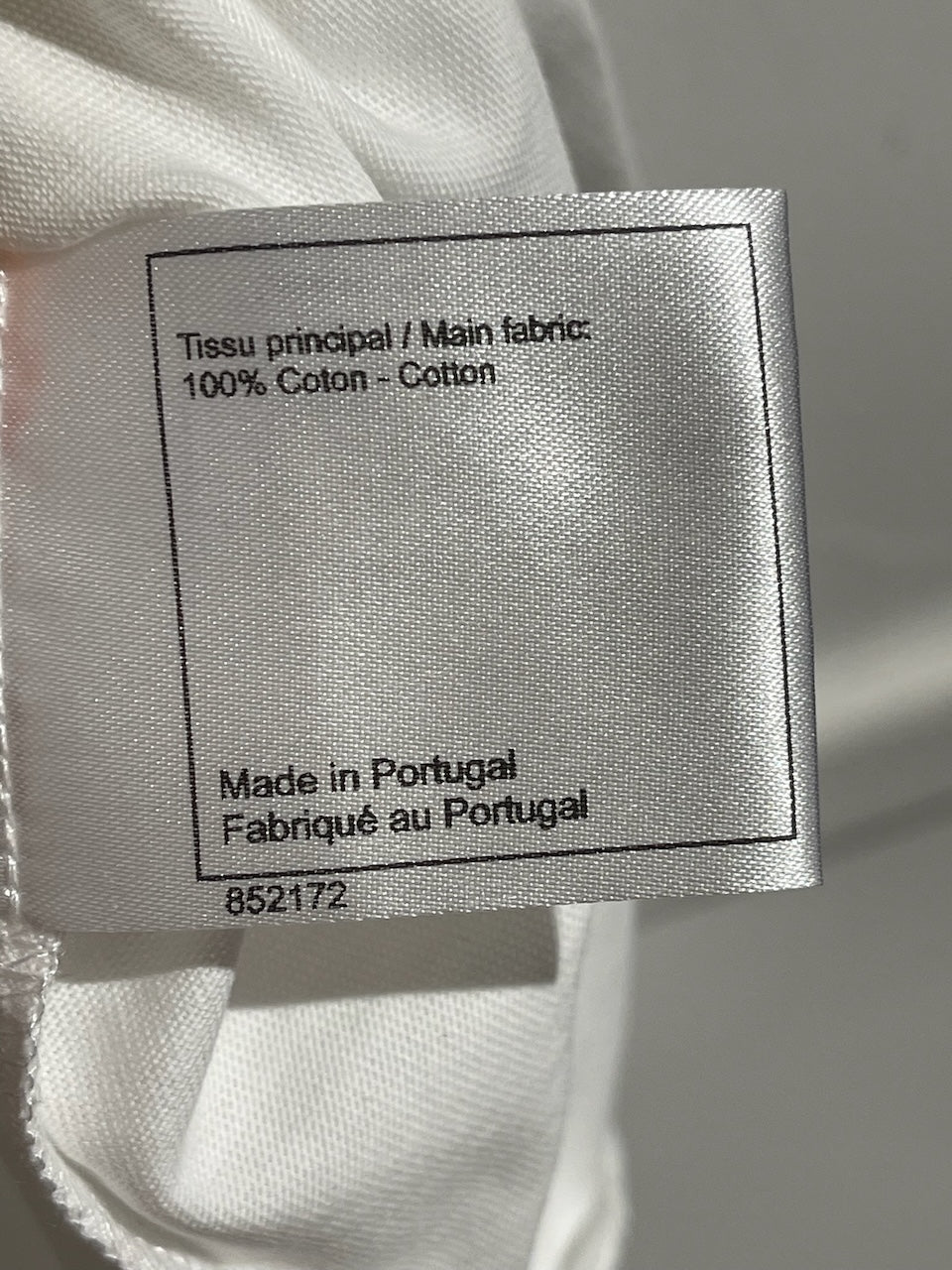 T-shirt en coton blanc avec inscription Chanel en noir effet velours sur l'avant. Col rond et manches courtes. Modèle unisexe.