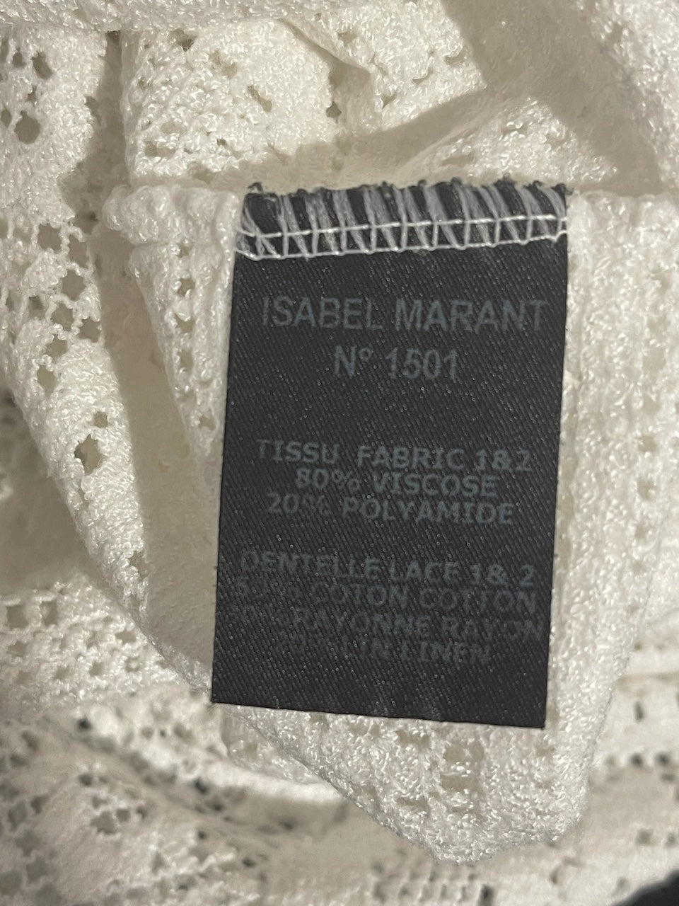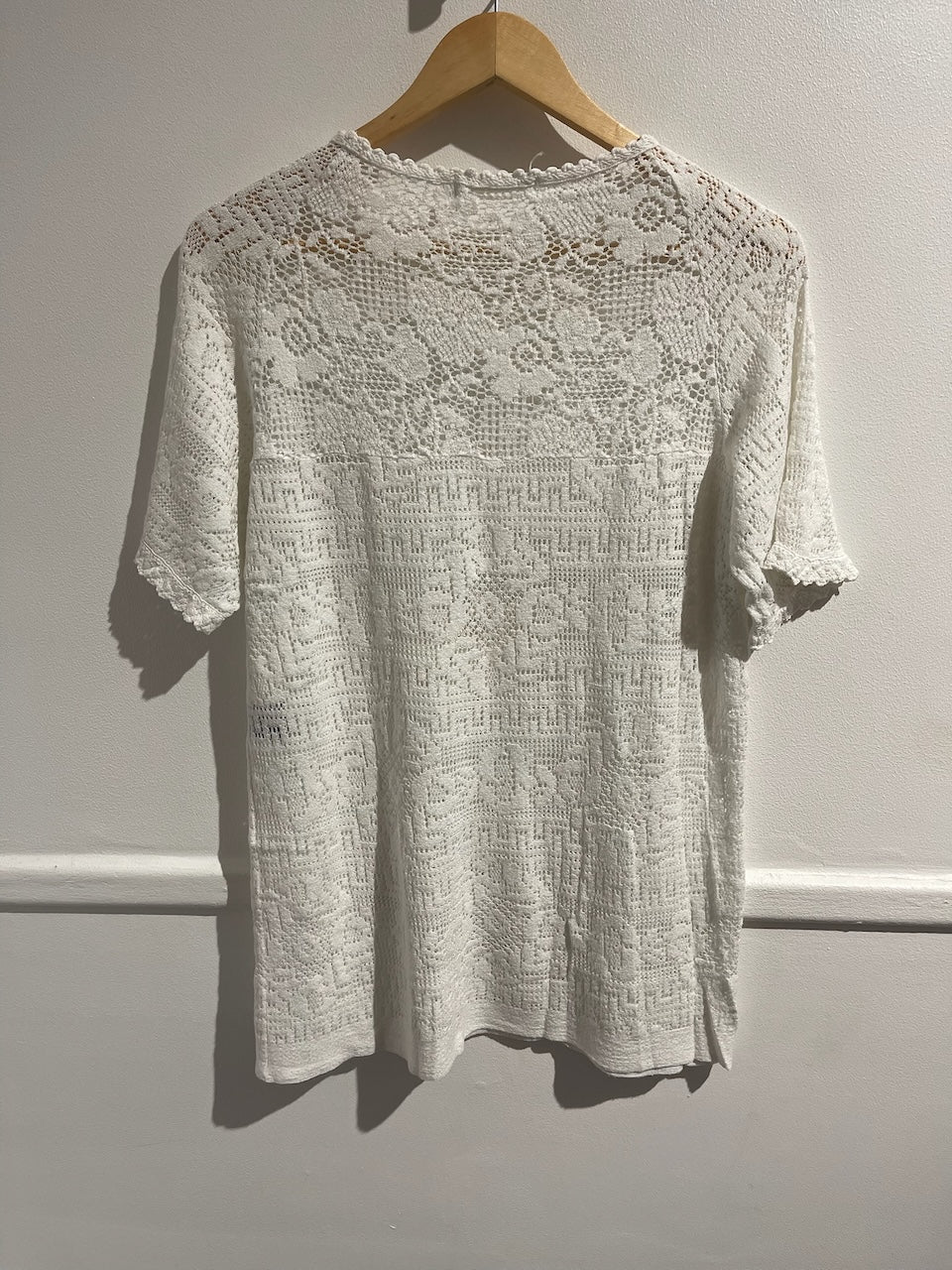 T-shirt en dentelle blanc avec col rond et manches courtes.