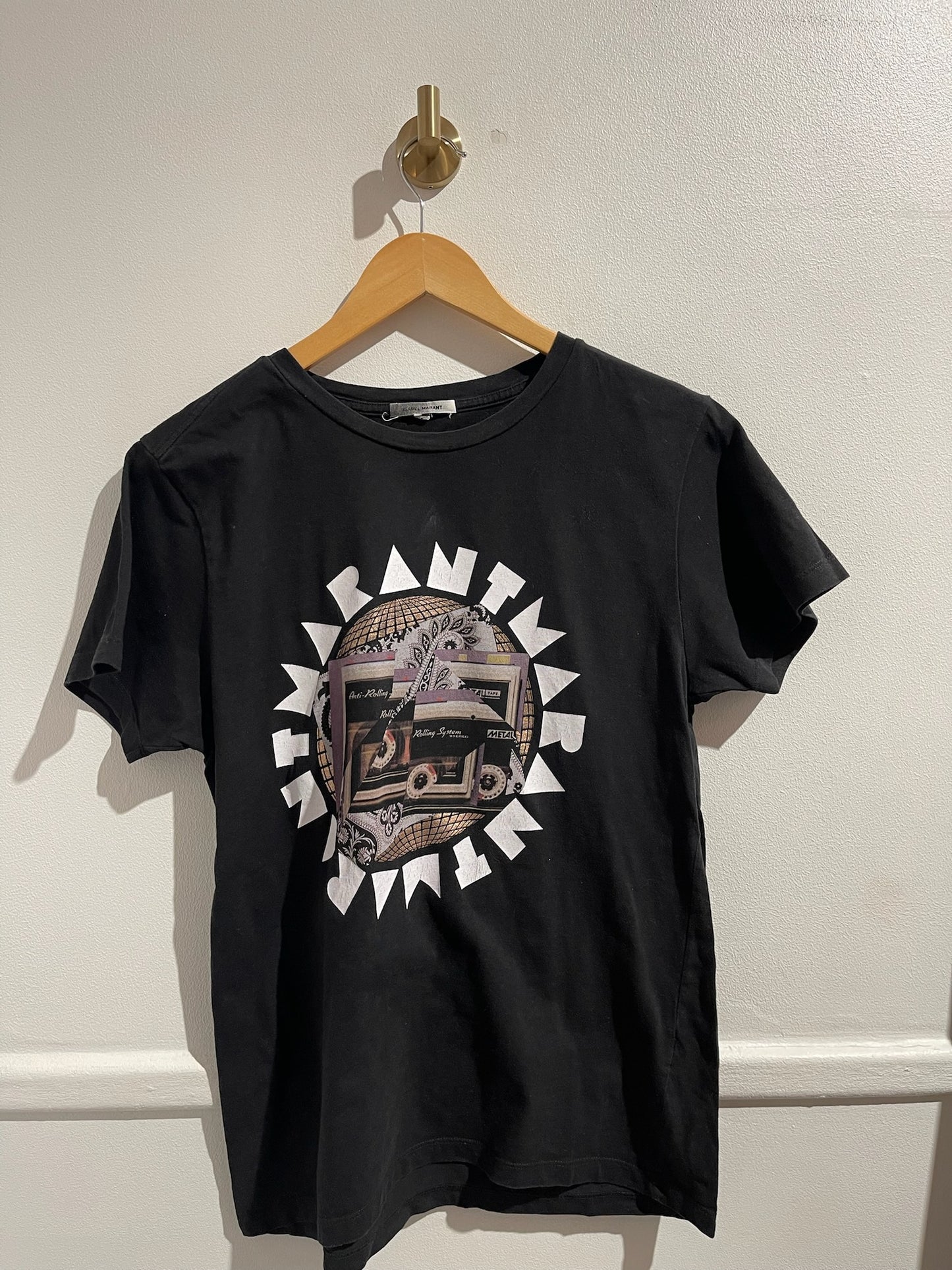T-shirt manches courtes en coton noir orné d'une inscription: "Marant" circulaire avec un imprimé.