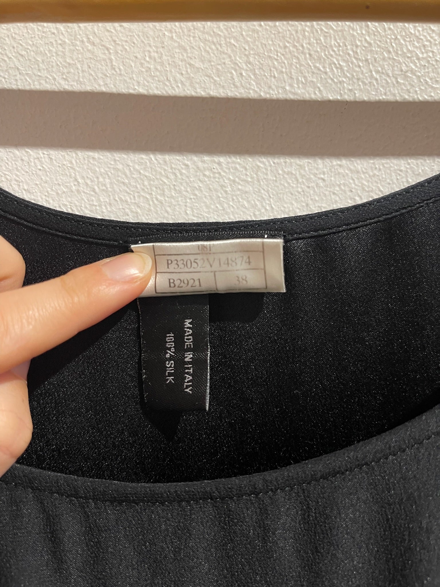 Top style caraco en 100% soie bicolore noir et écru. Logo CC en métal minimaliste à l'avant.