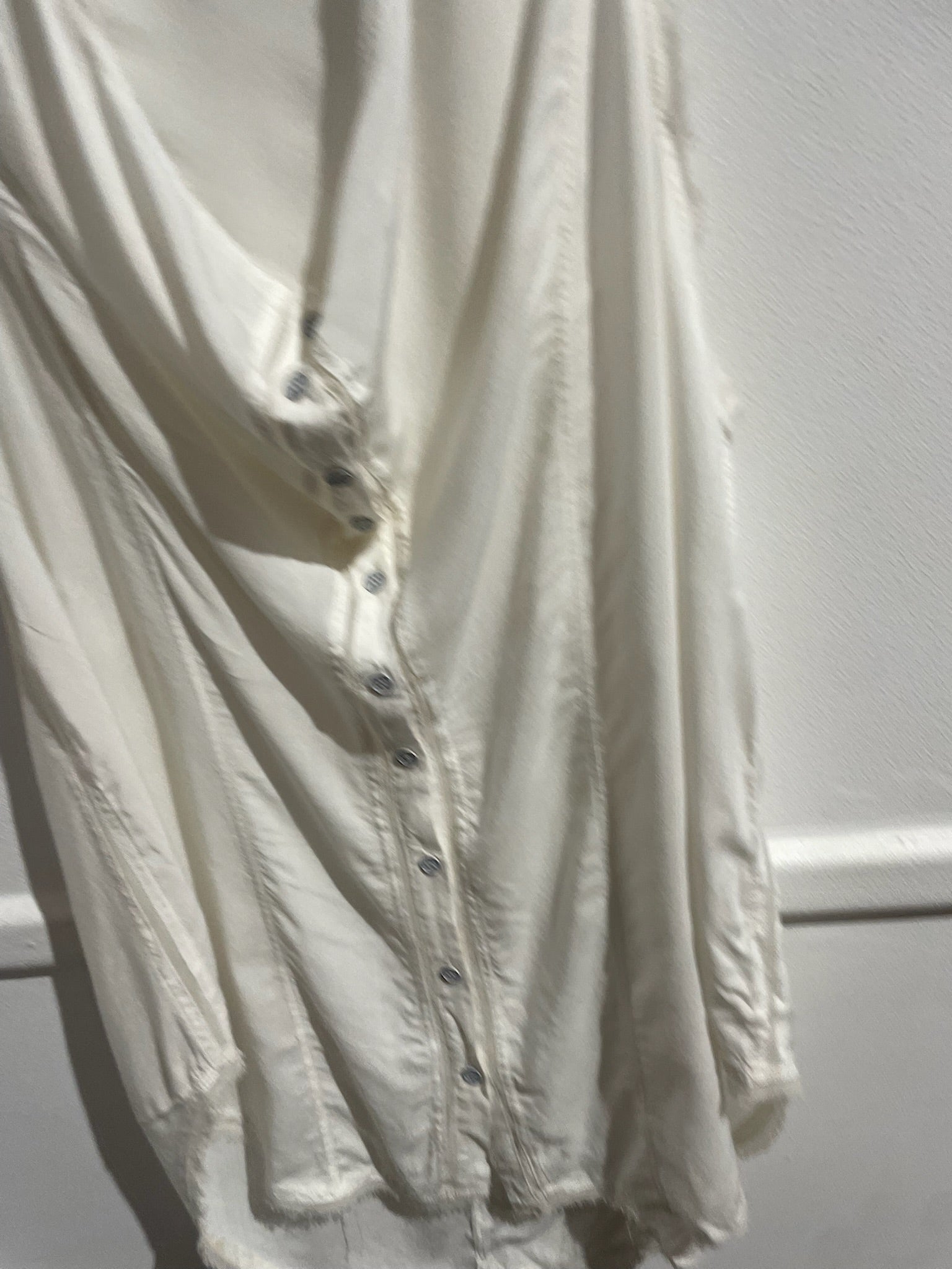 Top sans manches en viscose blanc avec décolleté boutonné.