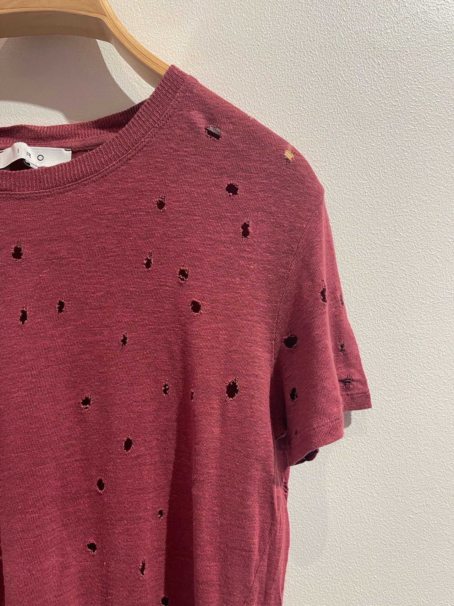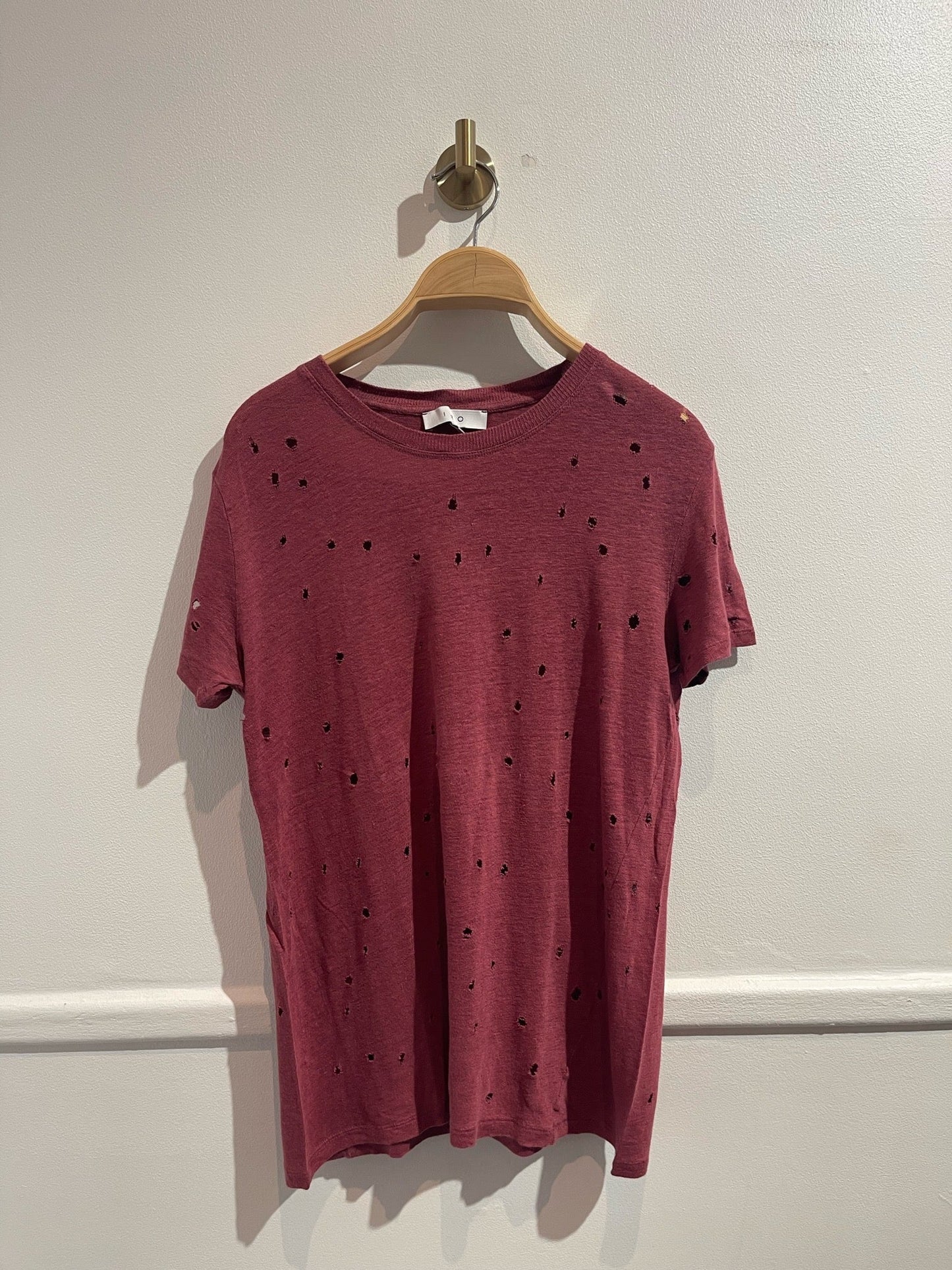 T-shirt en lin rose fushia avec effet usé.