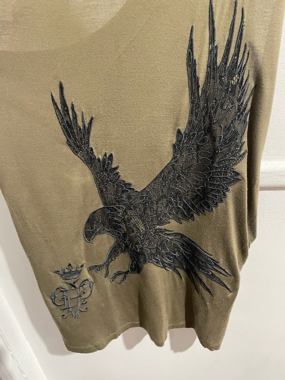 Débardeur en viscose kaki avec dos nageur oversize et poches latérales. Aigle brodé à l'avant.