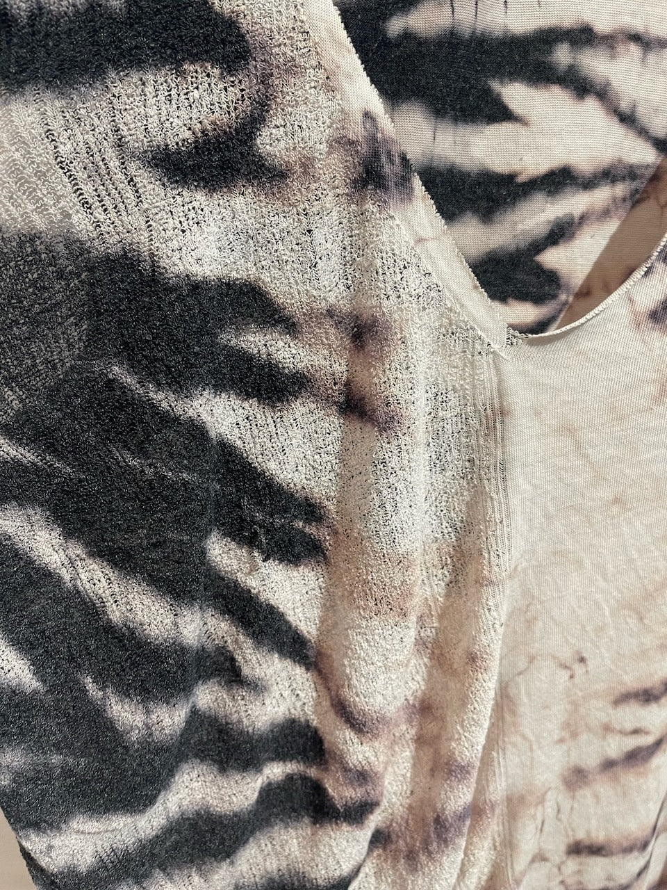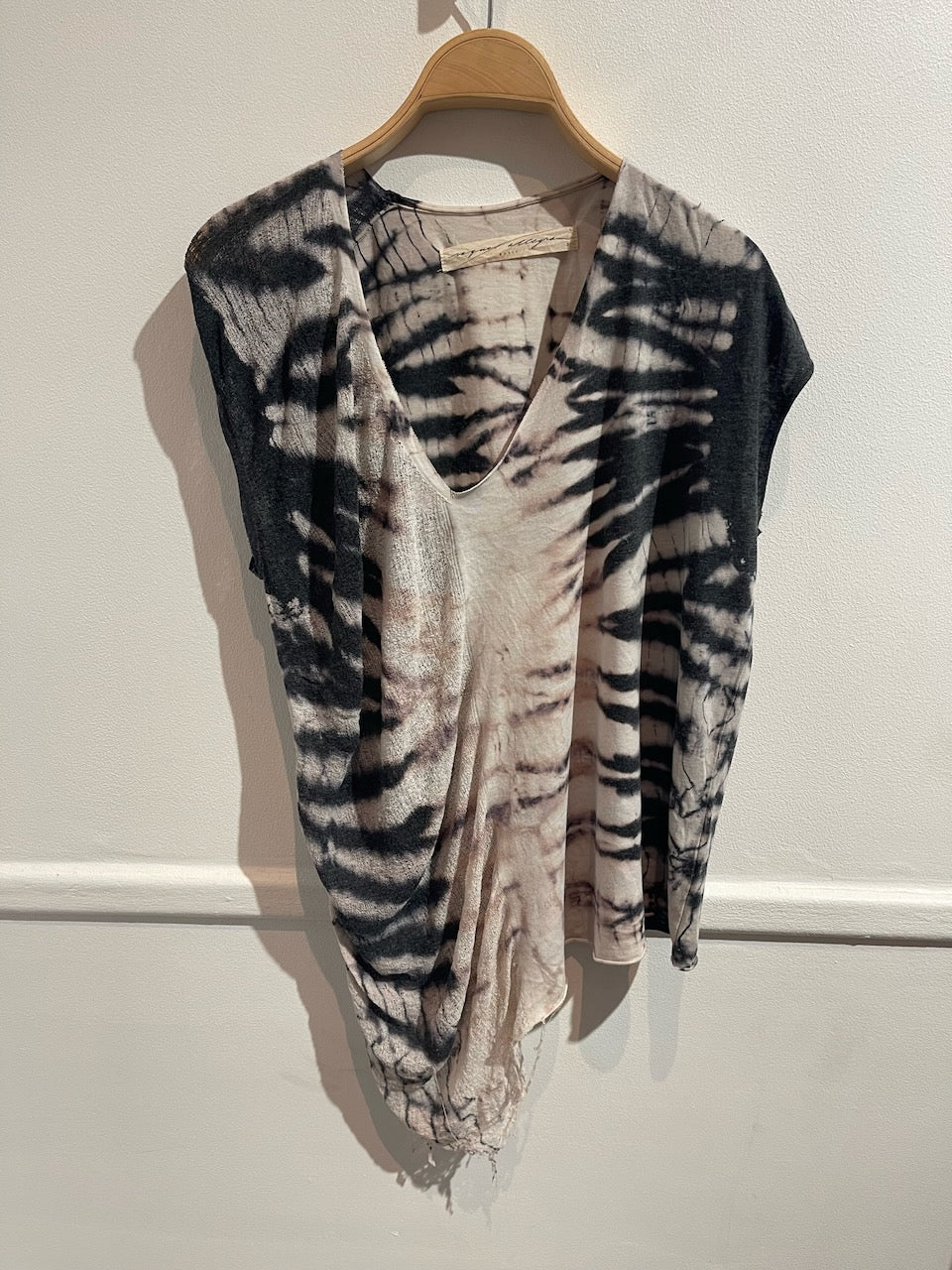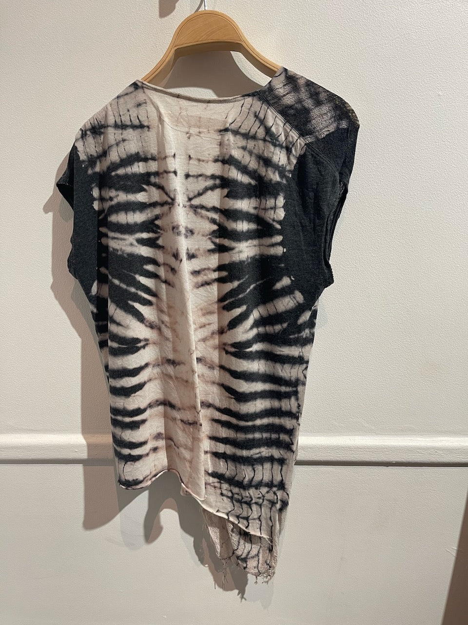T-shirt en coton mélangé tie & dye avec col rond et manches courtes. Ourlet asymétrique et effet usé.